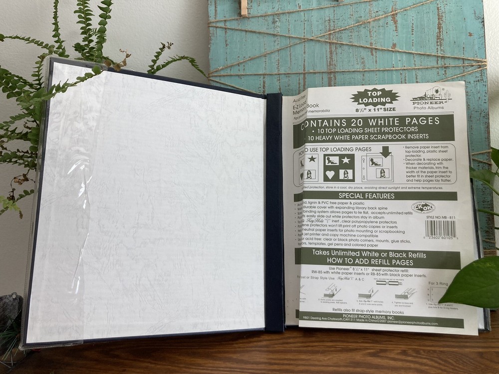 Pioneer E-Z Load 8 1/2x11 Memory Book For Photos And Memorabilia 20 Pgs. Note front page paper/ index has a fold in it but it is unused.