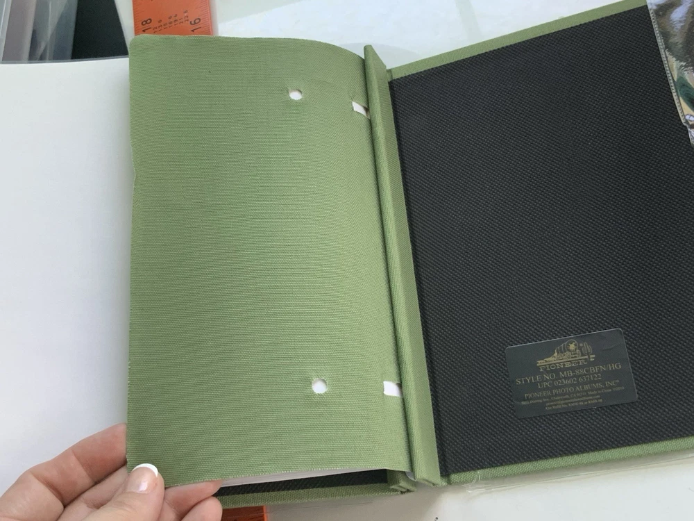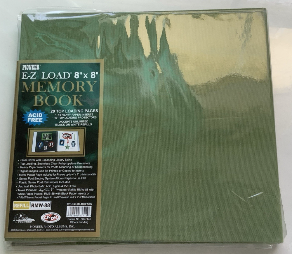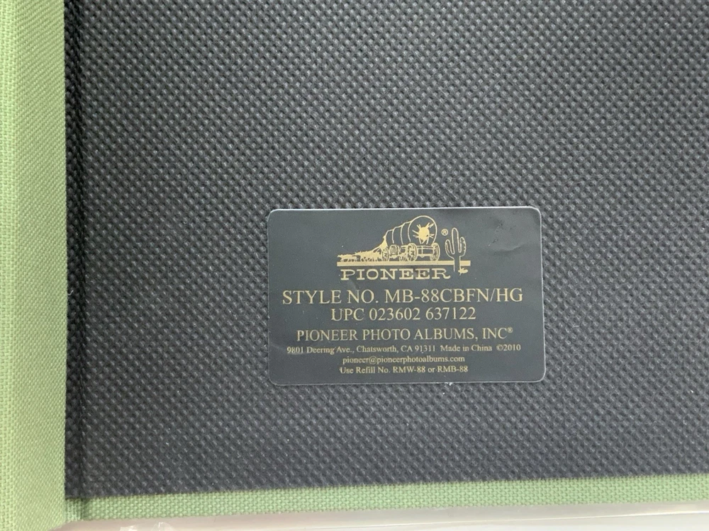 Unused but clear cover jacket is ripped on back and index page is bent on edge. Please see photos for exact condition. Includes a bonus 4x7 pocket page in back Spine adjusts so that the green binding covers adding additional inserts (not included) post bound Used Pioneer Key Hole Protector Refills RMW-88 or RMB-88 or 47-RMW