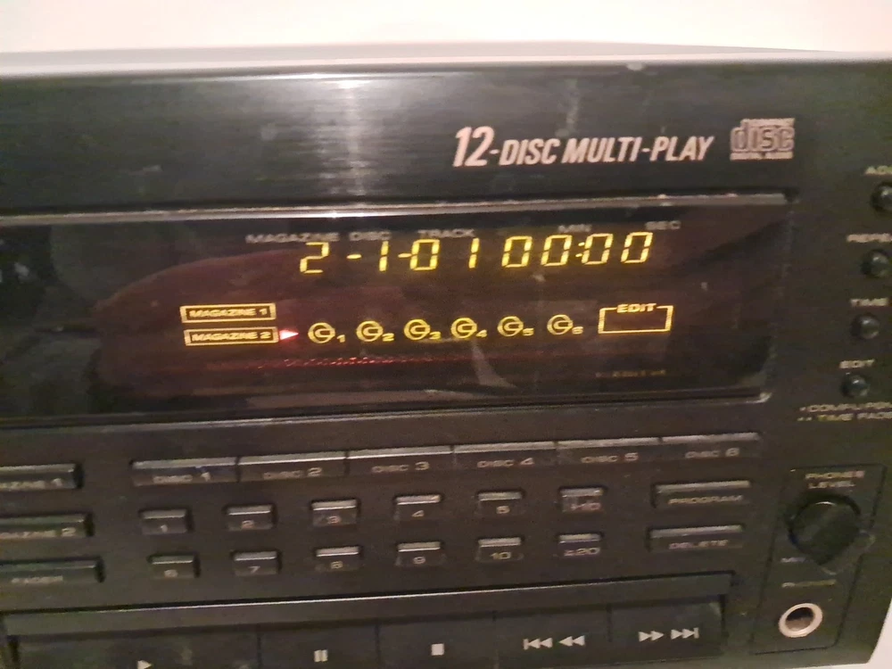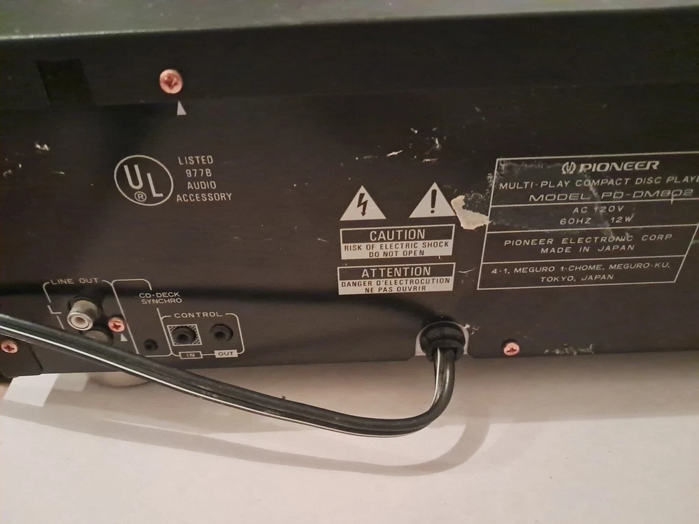 Pioneer PD-DM802 Vintage 12 Disc Multi-Play CD Changer - Partially Tested - Read This item is in good used cosmetic condition. It has been tested to turn on. This item has not been tested with speakers. However, a cartridge was inserted into both decks. The bottom deck ejected perfectly. However, the top deck only released the lock when the eject button was pressed. A thin piece of metal was used to pull the cartridge out manually. If you have any questions, please let me know, and I'll do my best to answer them. Please see all images before purchase. Thanks!