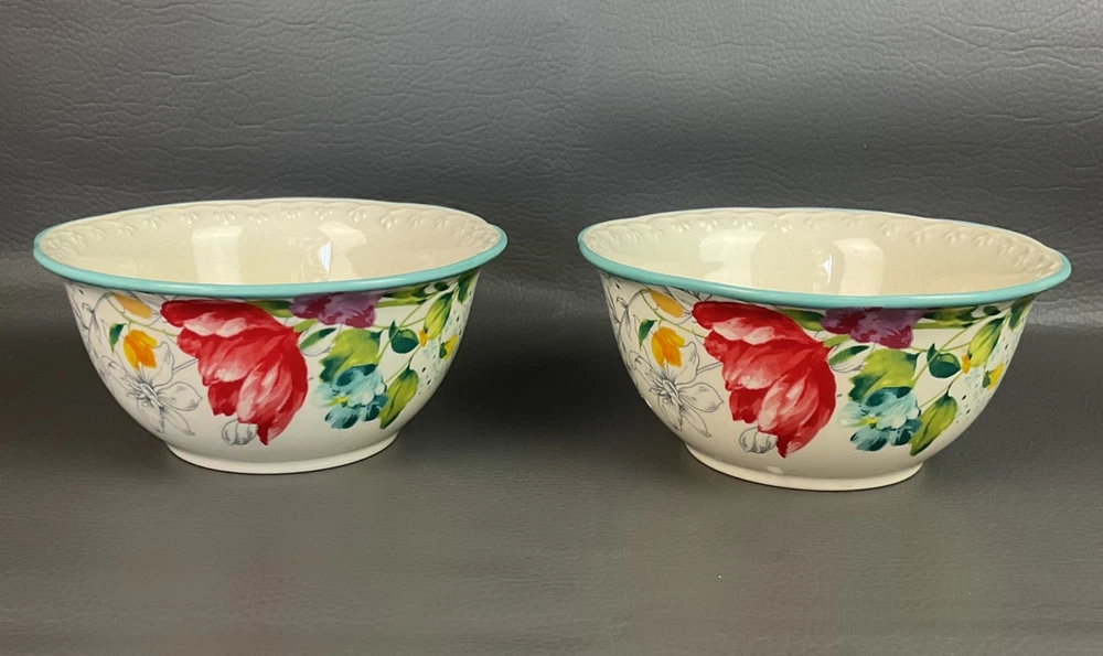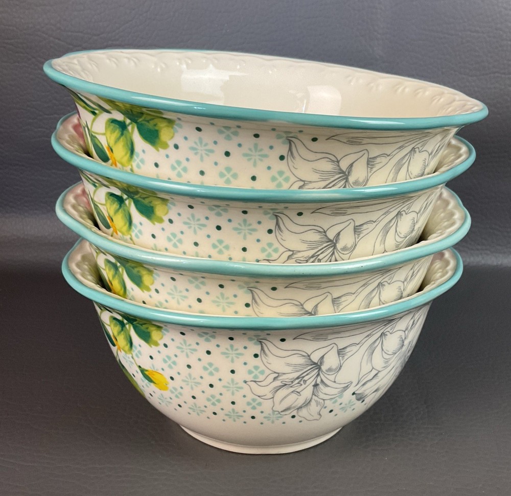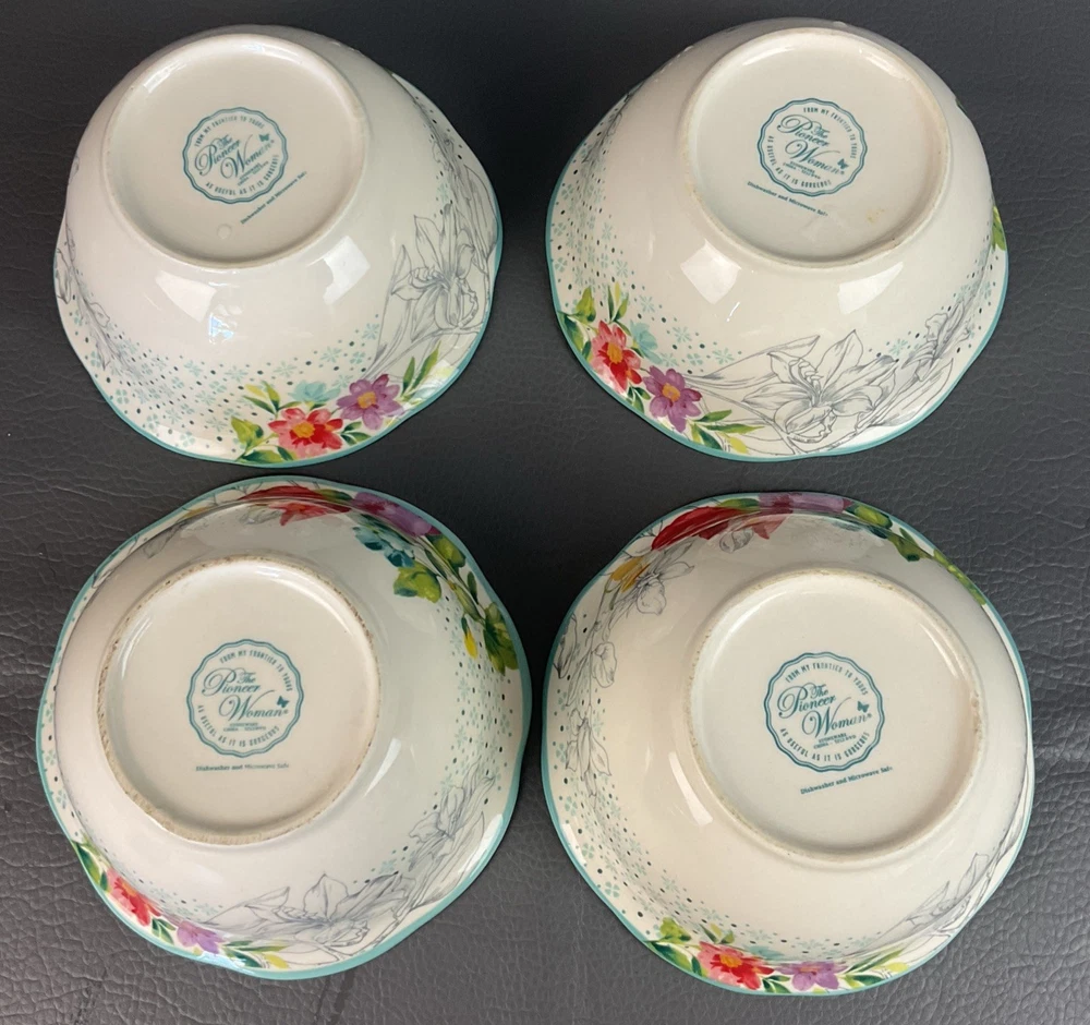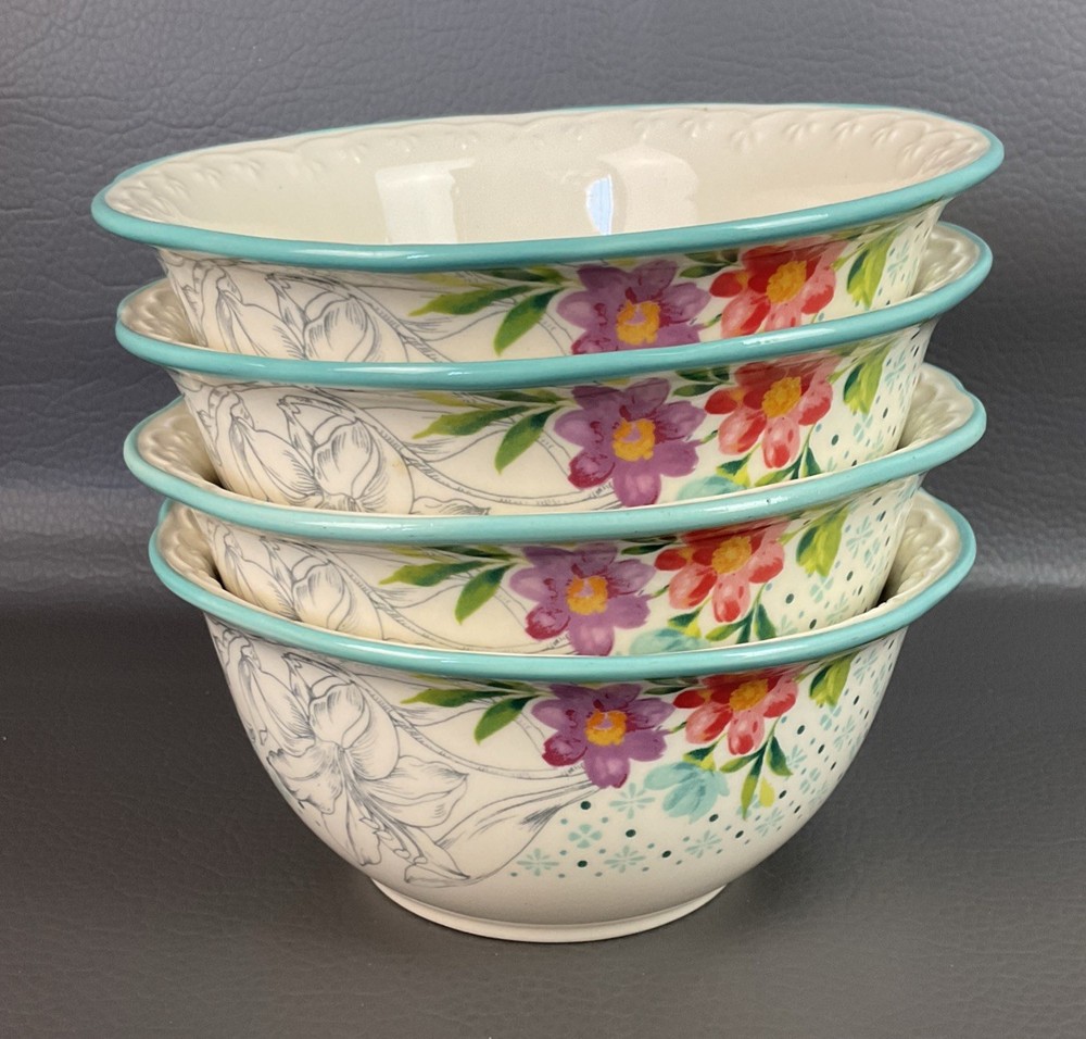 The Pioneer Woman Blooming Bouquet Ceramic 6.5" Cereal/Soup Bowls Set 4 is a charming addition to any kitchen or dining table. Featuring a floral pattern and a multicolor design, these round bowls are microwave and dishwasher safe for easy use. Perfect for all occasions, these bowls are ideal for teens and adults alike, with a country style that fits well with a garden or flower theme. The set includes four original pieces from the Pioneer Woman brand, each with a 6.5-inch diameter and a simple yet elegant design that is sure to impress.