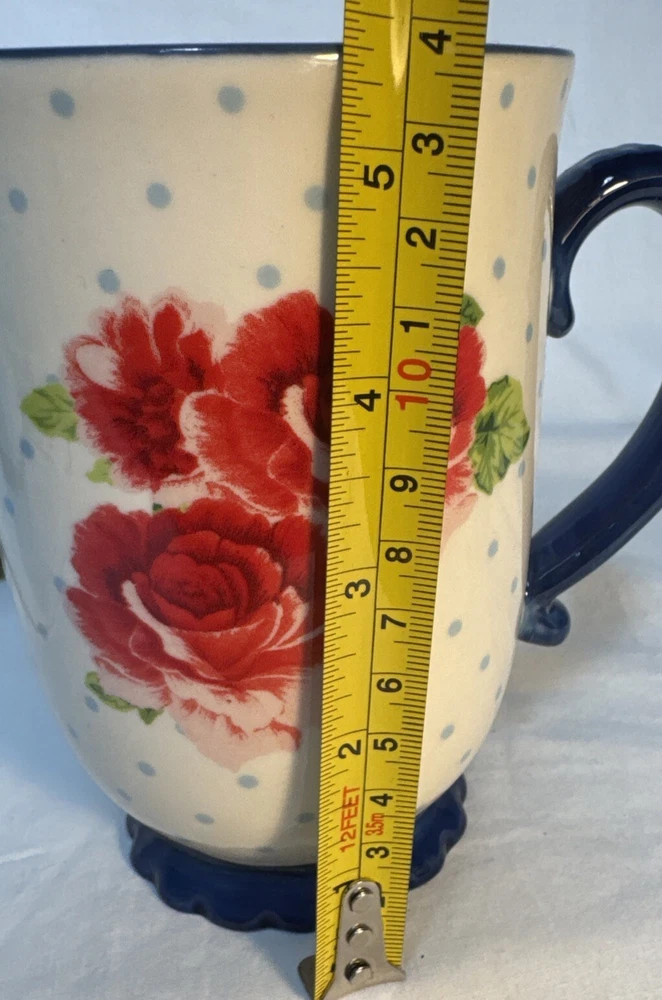 The Pioneer Woman Heritage Floral 18 oz. Mug Coffee Tea Roses Polka dots In excellent condition See photos