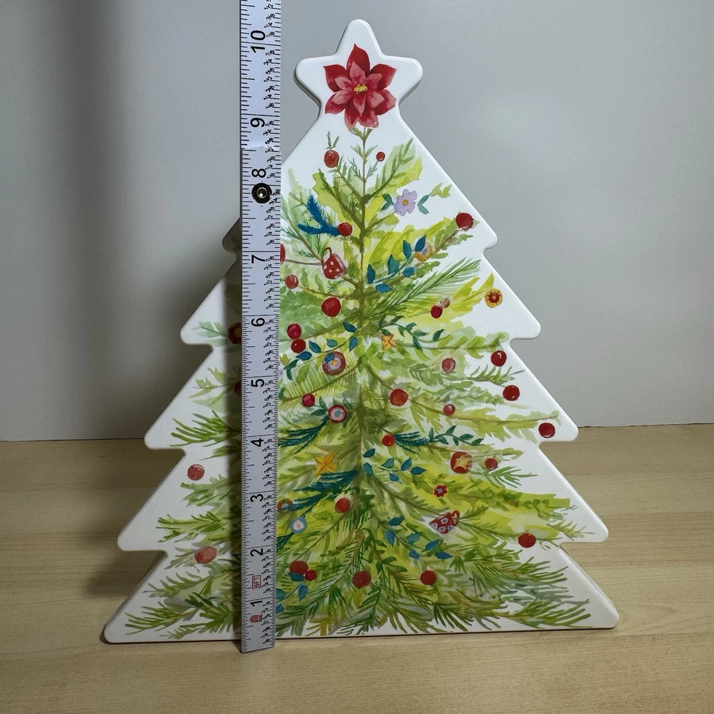 Set of 2 Ceramic Christmas Tree Shaped Serving Dishes White & Green Holiday...