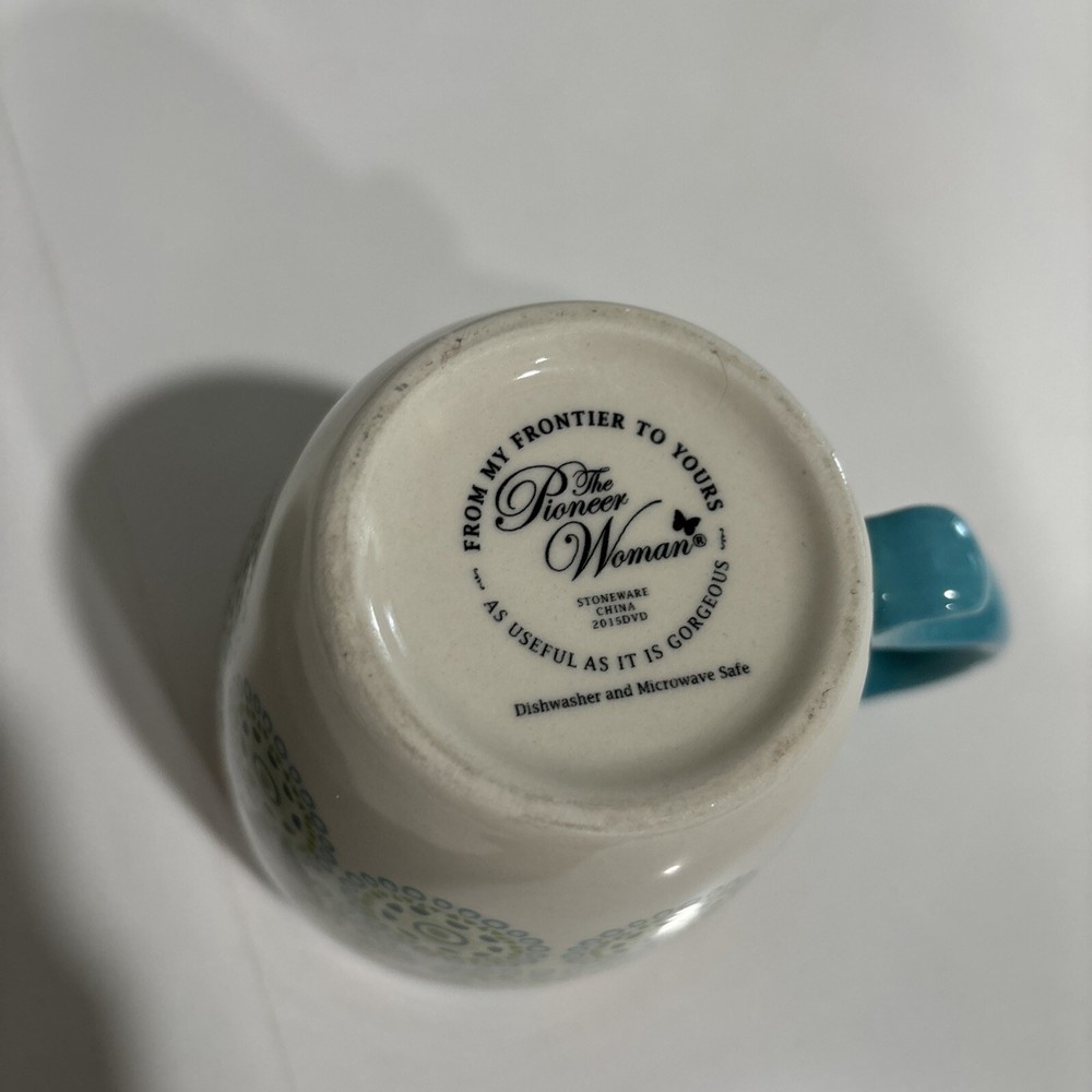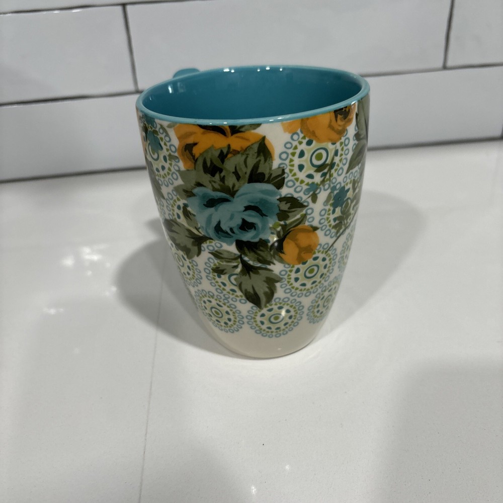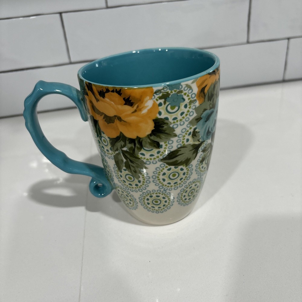 Pioneer Woman ROSE SHADOW Jumbo LATTE Coffee Mug Turquoise Yellow Roses 24 OZ