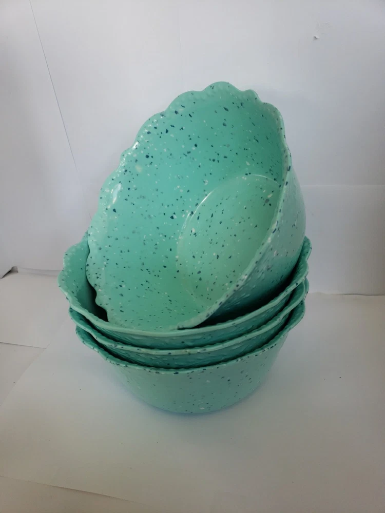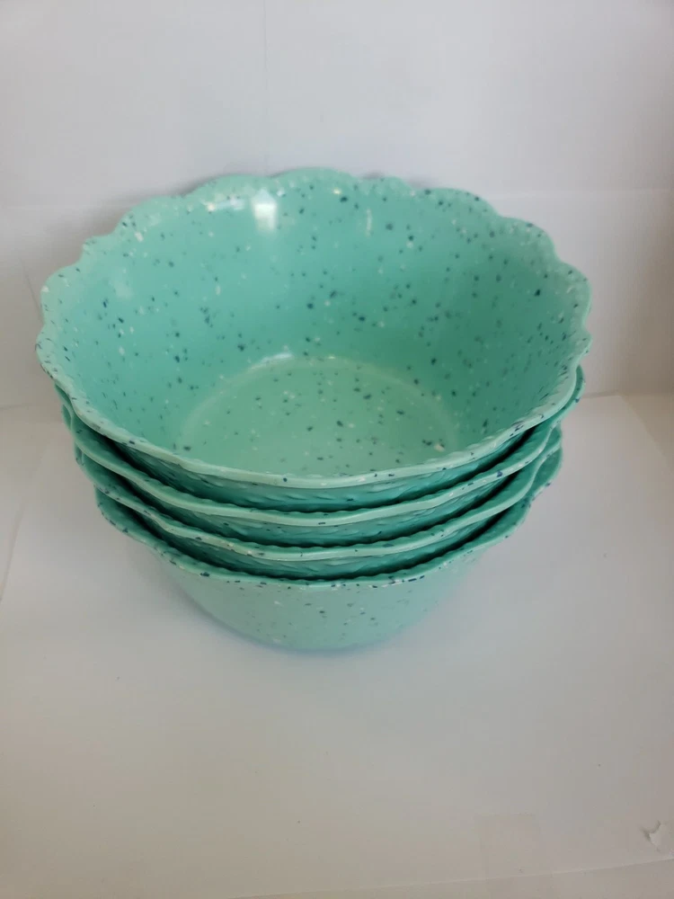 Pioneer Woman Set of 4 Juliette Teal Speckled 6.5" Cereal Bowls Melamine
