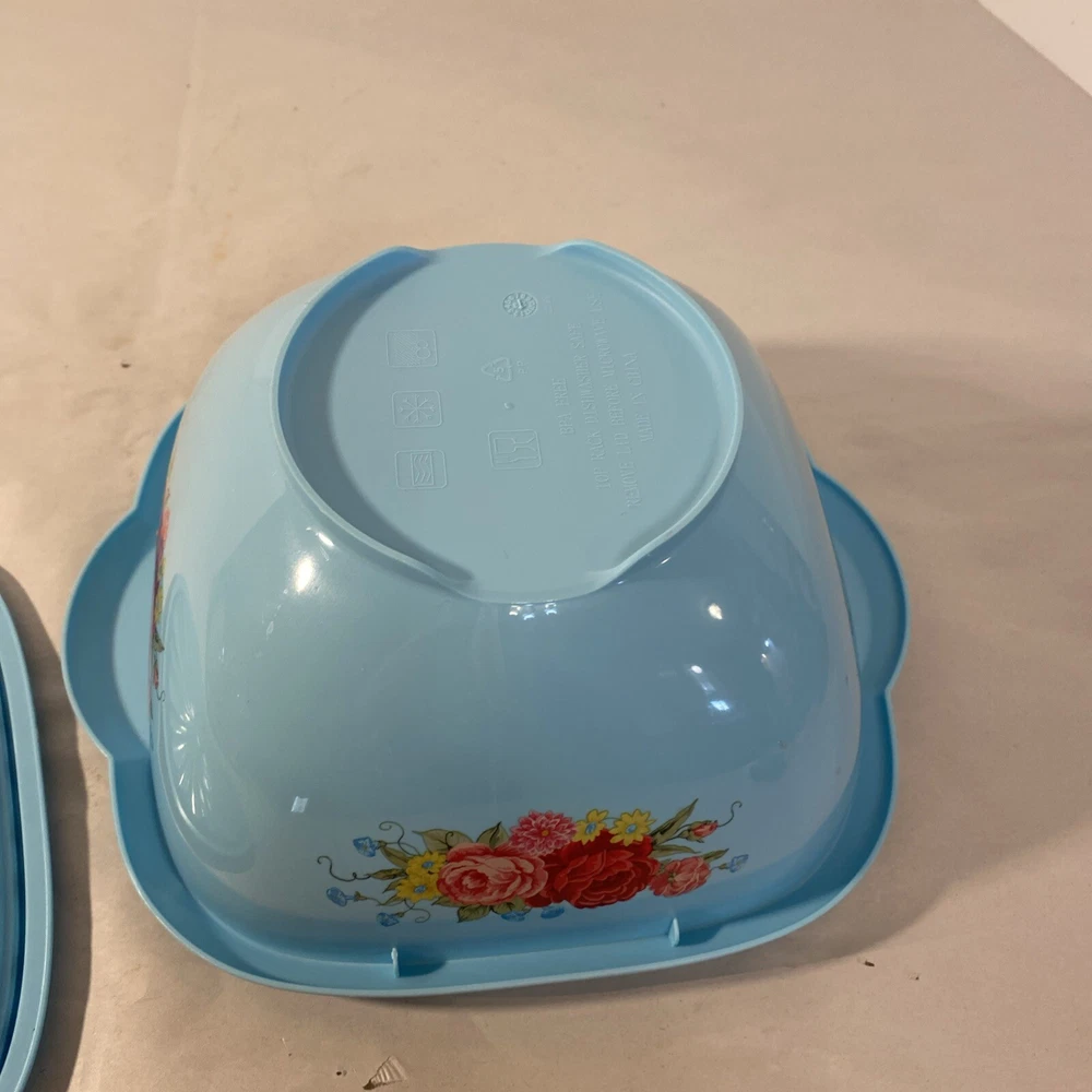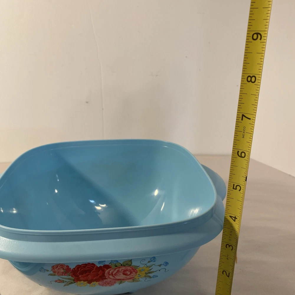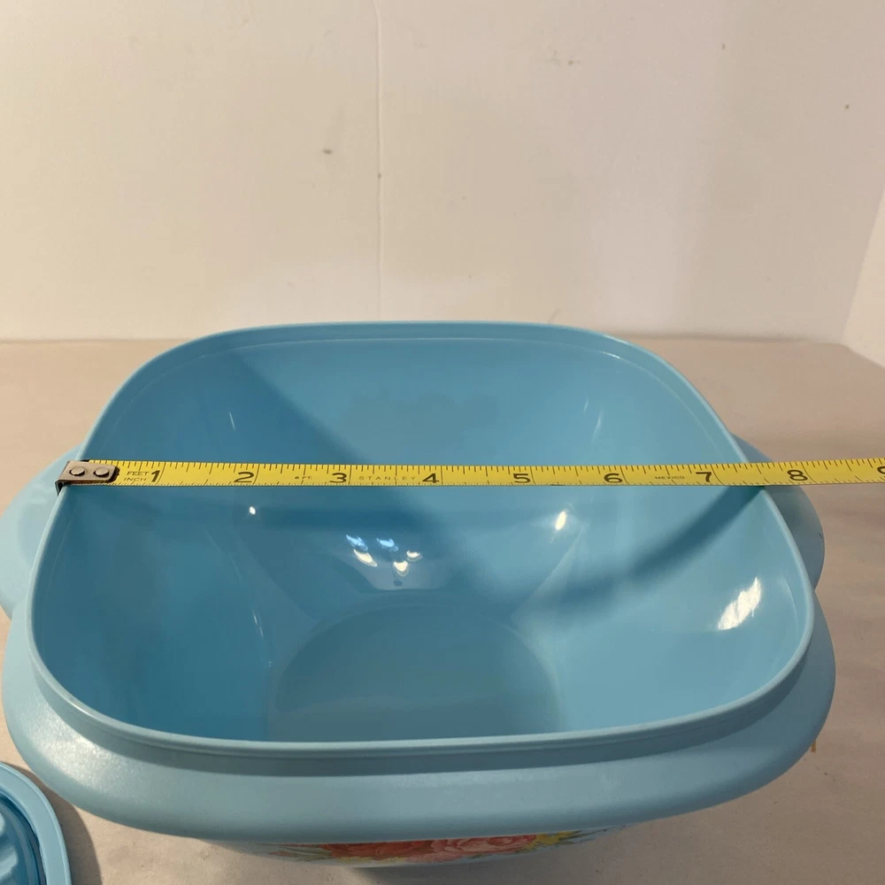 Item Height:4.5 inShape:SquareItem Length:8 inNumber of Items in Set:1Pattern:FloralCountry/Region of Manufacture:ChinaLid Type:Snap LidType:Storage BowlMaterial:PlasticTheme:RoseBrand:Pioneer WomanFeatures:Reusable, With LidItem Width:8 inColor:Turquoise blue
