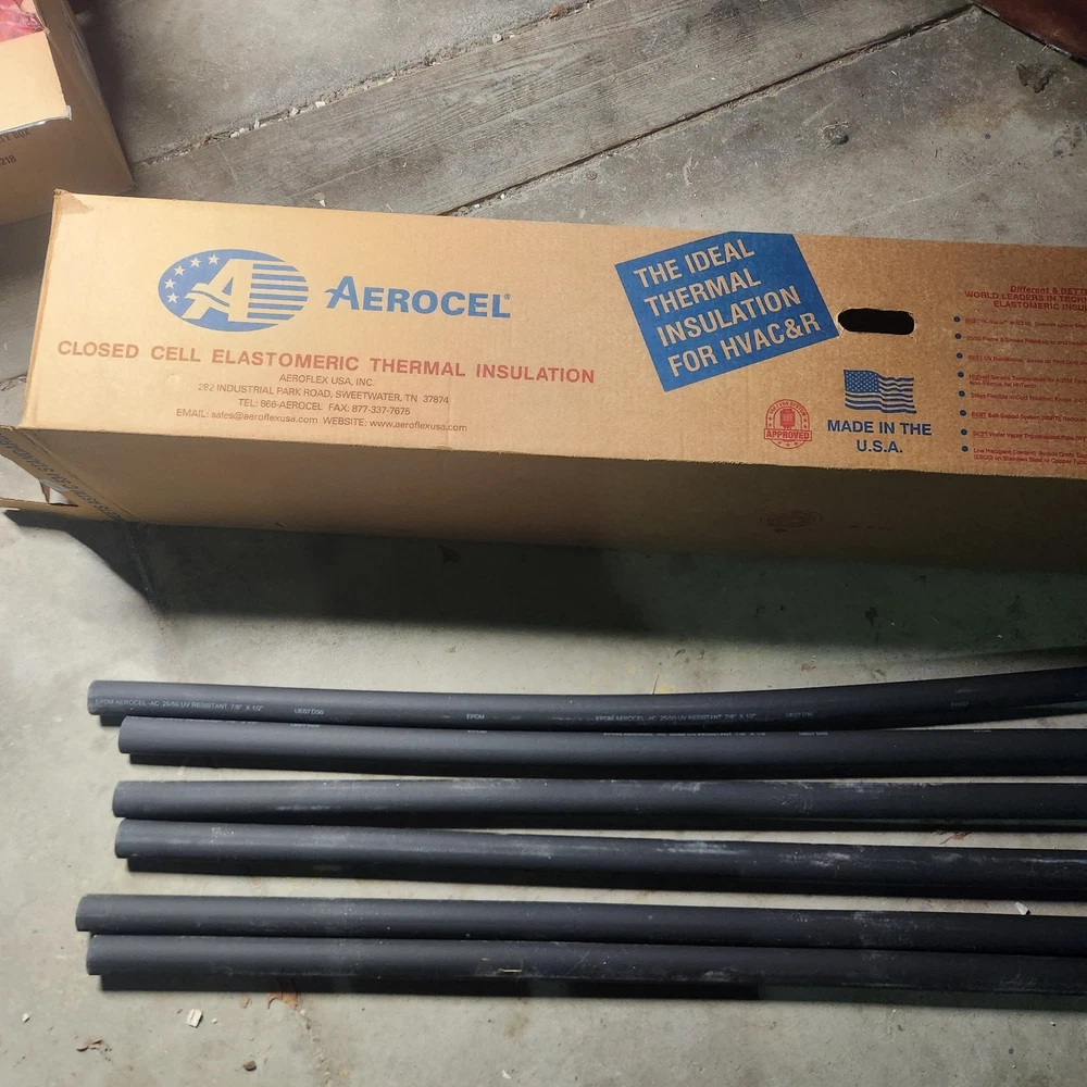 (6-pack) The product is a 6 ft length of Aerocel Thermal Foam insulation designed for 3/4 inch pipes. It is made of black foam material and is suitable for use with copper, PVC, PEX, and AC pipes. Manufactured in the United States, this insulation foil comes in a pack of 1 and provides efficient thermal protection for pipes in various industrial and commercial applications. This is great pipe installation for 3/4" copper pipe, AC lines, pvc, pex, cpvc, metal, stainless steel pipe, gas lines, furnace lines, cast iron, or regular pipe lines. This product says 7/8" x 1/2" on the side. The inside diameter (ID) of this product is 7/8", if it was 3/4", it would not slide over the piper you install it on. This product fits 3/4" pipe regardless of material. Product dimensions: 3/4" (inside diameter) x 6ft long x 0.35" thick material. I have every style and size of installation avaliable. Please send me a message asking for a size. I guarantee I can get it. They all come in 6ft length. Message me when ordering multiple. Much cheaper shipping rates for more quantities. (6-PACK)