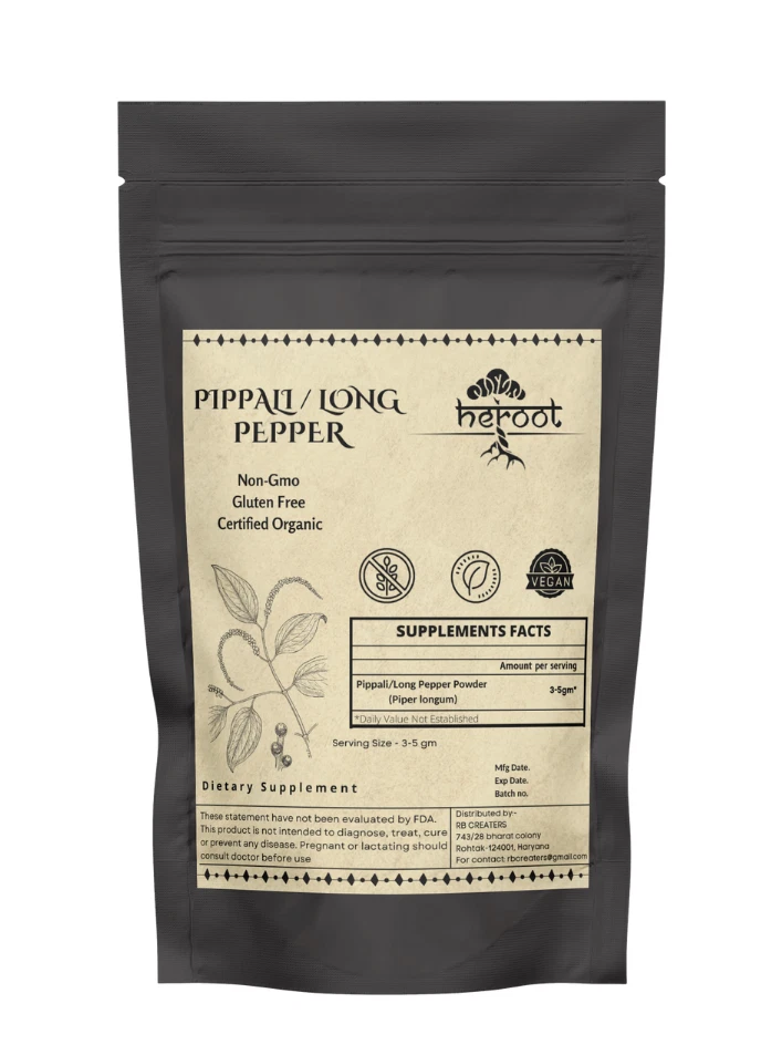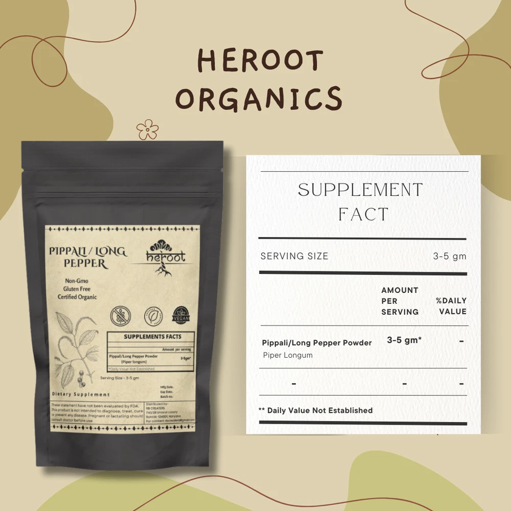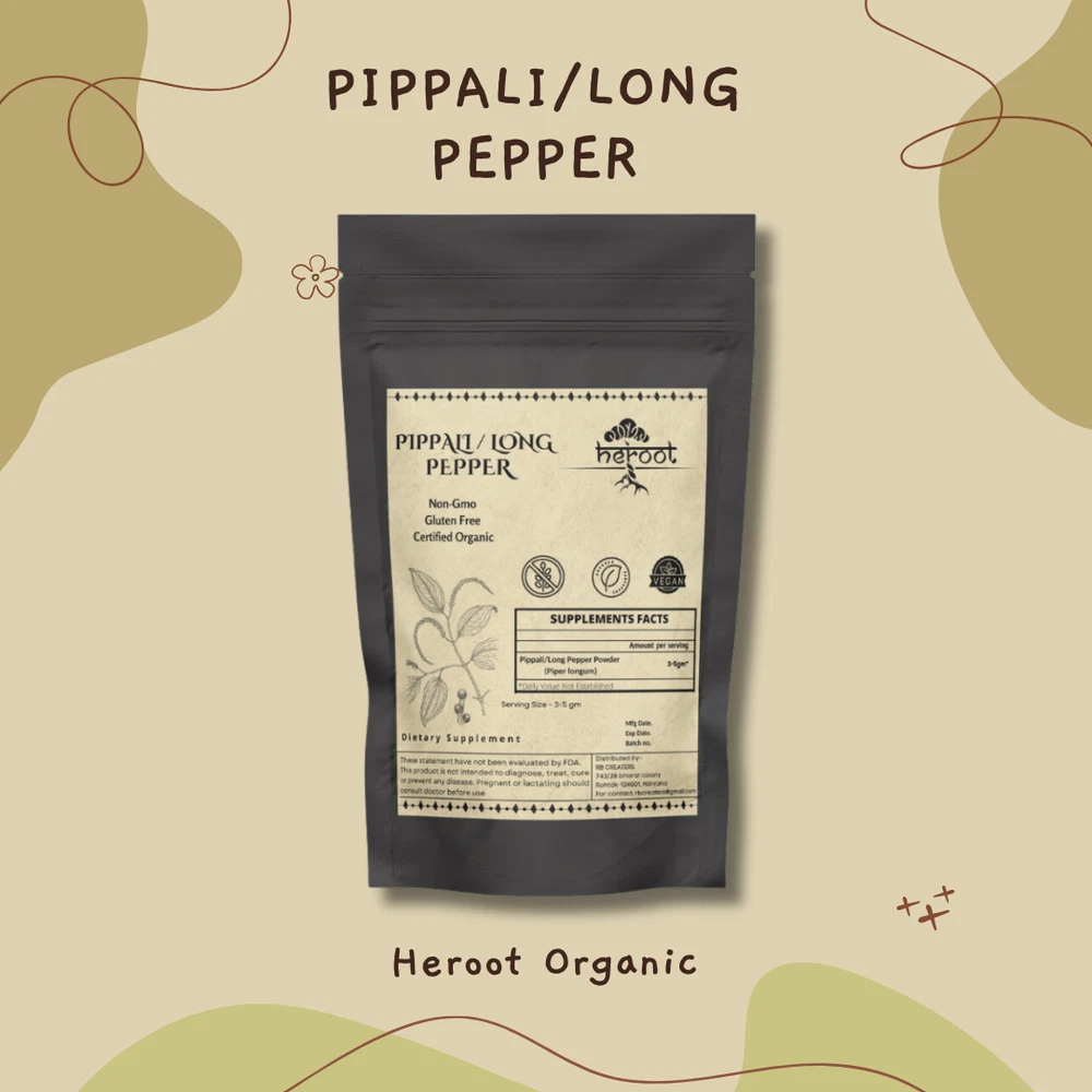 Heroot Organic Long Pepper Powder Long Pepper Powder embodies expectorant and laxative property. Long Pepper is used in the treatment of cough and cold. It is useful in the treatment of constipation and promotes bowel movements. In addition to this, it helps to reduce pain and inflammation in the teeth. Key Ingredients: Organic Long Pepper Key Benefits: It is used in the treatment of cough and cold Helps to release mucus from the air passages due to its expectorant property Assist in weight management Improves the metabolic activity of the body Provides relief in the condition of constipation Directions For Use: Consume 1/4 tsp (3-5 gm) with lukewarm water after a meal Or as directed by your healthcare provider How To Consume: Can be mixed with warm milk & honey Can be taken with juices & smoothies Can be taken directly with honey · Can be filled in capsule and consumed with water Safety Information: · Store in a cool dry place · Keep out of reach of children · If you are pregnant or lactating or prone to any food allergy or under any medical condition consult your healthcare practitioner before use Disclaimer The above description is for information and knowledge purpose, not a healthcare professional advice. Please consult your doctor and/or pharmacist before you take this vitamin. Pregnant or lactating women, diabetics, hypoglycemics, and people with known medical conditions and/or taking drugs, should consult with a licensed physician and/or pharmacist prior to starting any supplementation program. The above statements have not been evaluated by the Food & Drug Administration. Shipping and Handling 1. Shipping time will be 1 business day after the cleared payment 2. We will ship by Indian Post service 3. Shipment will take 15-30 days. Few more days for your local customs delay and formalities. 4. For Express service additional charges will be applied. For any reason you wish to leave Negative or neutral feedback, Please contact us first and let us mutually resolve it. We care for your satisfaction and will make sure that you are happy with the transaction to post us 5**** ratings in all areas. ***Customs Information*** Heroot will not be liable for packages refused or held by customs for delivery. We request that you contact customs office and ask about import regulations and restrictions before placing your order. It is importsnt for you to become familiar with customs policies for your specific country before ordering. Customs regulations differ by country and not knowing their regulations can result in your order incurring high import duties, the delivery being delayed or even returned. Please check with your customs office to see if your country permits the shipment of the products you are planning to order from us and if any additional licenses or permits are needed. Please note: if your order is returned to us due to banned/ restricted products policy, a wrong address, refusal to pay customs fees, refusal to accept the order or because no one was there to accept the delivery of your order, we will refund your order as follow: you will be refunded the total amount of the order, minus the original shipping charge .