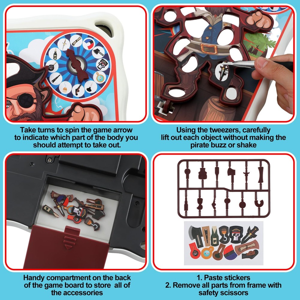 Sonwyoung Pirate Electronic Operation Board Game for Boys Girls Ages 6+ with Tweezers and Fun Game Pieces Classic Family Operation Board Game for 1+ Players, Christmas Funny Gifts Beautiful Packed Game Set: each operation board game set comes properly packed, ensuring it remains intact; The package includes one complete operation game board set, ideal for instant out of the box playing Vibrantly Colored and Compact Sized: the compact size about 7.09 x 5.91 x 1.38 inches makes it an ideal pick for flexible gaming sessions; Easily fit it in a tote or backpack with appealing, colorful artwork, you can enjoy the fun of board games wherever you go Quality Manufacturing Material: crafted from quality manufacturing material, our operation board game assures sturdy and safety; Players can have a carefree game experience, whether kids playing their favorite board games or adults in an extreme operation game Thought Provoking Gameplay: our pirate themed operation board game, not only elevating the entertainment factor, but also incorporating strategic thinking abilities; A winning combination of cunning tactics and wit satisfies the board game enthusiasts Ideal for Social Gatherings: celebrate your family reunions or friends' meetup with our interactive operation game; It serves as an entertaining tool, promoting team spirit and bonding over fun filled board game sessions, spreading happiness and excitement Features: A game loaded with strategy and fun Brimming with amusement, wit, and strategy, our operation board game is a sure hit among challenge and strategy game lovers. It's a both practical and fun gift for those who enjoy the thrill and excitement of kids board games or strategic mini board games. Portable gaming experience Our operation game for kids, with its compact size, brings the joy of board games to your fingertips. Be it an outdoor excursion or a travel trip, carry along the portable entertainment, and indulge in carefree board gaming sessions anytime, anywhere. Specifications: Material: quality manufacturing material Color: colorful Size: about 7.09 x 5.91 x 1.38 inches/ 18 x 15 x 3.5 cm Package includes: 1 Set operation board game Notes: Manual measurement, please allow slight errors on size. The color may exist a slight difference due to different screen displays. Shipping We offer FREE shipping on all orders! We ship within Three business days of payment, usually sooner. We use a selection of shipping services such as UPS, FedEx, USPS etc. We only ship to the lower 48 states, no APO/FPO addresses or PO Boxes allowed. Local pickups and combined shipping options are not provided at this time. Return You can return a product for up to 30 days from the date you purchased it. Any product you return must be in the same condition you received it and in the original packaging. Please keep the receipt. Payment We accept payment by any of the following methods: PayPal Please pay as soon as possible after winning an auction, as that will allow us to post your item to you sooner! Feedback Customer satisfaction is very important to us. If you have any problem with your order, please contact us and we will do our best to make you satisfied. Contact Us If you have any queries, please contact us via ebay. We usually respond within 24 hours on weekdays. Please visit our eBay store to check out other items for sale! Thank you for shopping at our store.