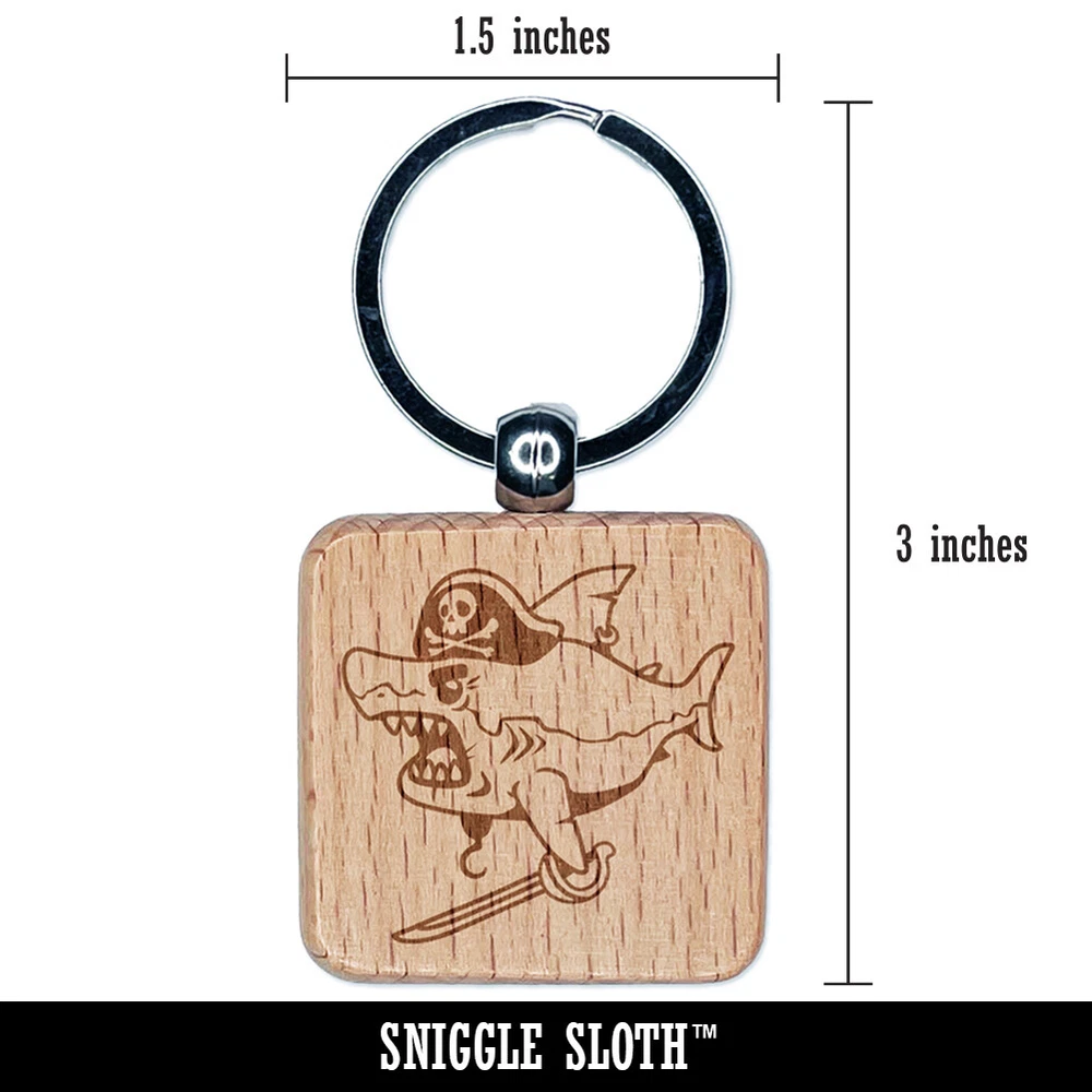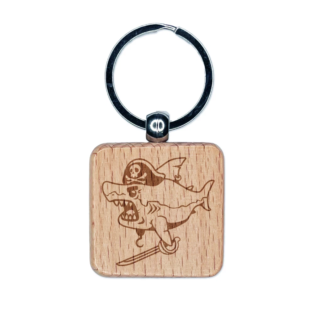 Pirate Shark with Hook and Sword Engraved Wood Square Keychain Tag Charm