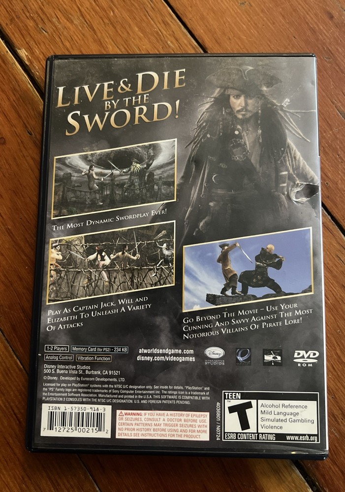 Set sail on a swashbuckling adventure with "Pirates of the Caribbean: At World's End" for the Sony PlayStation 2. Join the legendary Captain Jack Sparrow and his motley crew as they embark on an epic journey, battling fierce enemies and uncovering hidden treasures. This action-packed game brings the thrilling world of piracy to life, offering a blend of combat, puzzle-solving, and exploration. Released in 2007 and rated T for Teen, this game is perfect for fans of the "Pirates of the Caribbean" series who are looking for an engaging gaming experience. With its multiplayer feature, you can team up with friends or family and enjoy the challenge of the high seas together. Get ready to hoist the Jolly Roger and join the battle against the forces of evil that threaten the world of piracy.