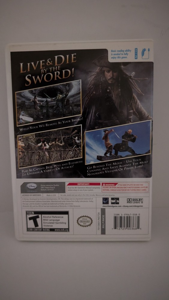Rating:T-TeenGenre:Action & AdventureUPC:0712725003685Release Year:2007Publisher:Disneygtin13:0712725003685Platform:Nintendo WiiGame Name:Pirates of the Caribbean: at World's End
