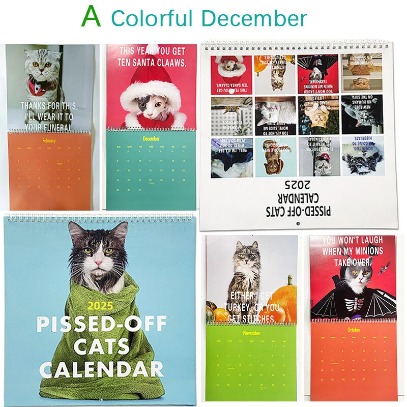 Product Description Features 1. Angry Cat Calendar 2025: This extremely interesting calendar showcases quirky cats who say some interesting things every month of the year. This is a fashionable Christmas, holiday, or New Year gift that friends, teenagers, students, and relatives will love (especially if they are cat lovers). 2. Interesting Cat Calendar - Cat Photos: The main feature of a cat calendar is having cute cat photos every month. These photos showcase different breeds of cats, whose lively, cute, and charming appearance brings joy and happiness to people. 3. Cat Calendar: Important Data and Holidays: Lazy Cat Calendar marks important dates and holidays, such as birthdays, anniversaries, holidays, etc., so that users can easily view and organize their schedules while remembering special data related to cats. 4. 12-month cat calendars: Ugly cat calendars typically focus on decorative design, making them not only functional tools but also room decorations. They may have beautiful covers, unique layouts, and color schemes, adding more appeal and beauty. 5. Christmas and birthday calendar gift options: Cat calendar can also be a special gift for cat lovers. Whether it's a birthday gift or a reminder gift, a cat calendar can bring surprise and joy to the recipient, expressing your concern and understanding for cat love. Specification Material: Paper Color: Multicolor Size: 28 x 28 x 1 cm Weight: 205 g Package Include: 1x Calendar Payment Shipping Returns Contact Us All Modes of Payment are acceptable,such as Apple pay, Google pay, PayPal, credit card, etc. We will deliver the items to you within the processing time. Please provide us your correct receiving address (include house number, Street name) , so that we can ship the order to you as soon as possible! If you need us to ship the items by other way, please feel free to contact us. Thanks! Please check your shipping address carefully before checkout, it can't be changed if order completed. If you are not satisfied with your purchasing, you can return the product and get a full refund. But we will not responsible for the shipping and people damaged. You can return a product for up to 30 days from the date you’ve purchased it. Please contact us to confirm the return address before you return the items. Incorrect/Faulty/Damaged Items: Please contact us to arrange for the return via eBay messaging or one of the numbers above. NO postage will be refunded unless agreed upon in email or writing prior to returning. Monday to Friday 9:00 am to 6:00 pm. We do not work holidays . If you send email to us,In our working hours will be resumed within 24 hours. If you we are not satisfied with the product or service ,please contact me and don't give us negative or natural feedback,We must give you a satisfactory solution. Payment All Modes of Payment are acceptable,such as Apple pay, Google pay, PayPal, credit card, etc. Shipping We will deliver the items to you within the processing time. Please provide us your correct receiving address (include house number, Street name) , so that we can ship the order to you as soon as possible! If you need us to ship the items by other way, please feel free to contact us. Thanks! Please check your shipping address carefully before checkout, it can't be changed if order completed. Returns If you are not satisfied with your purchasing, you can return the product and get a full refund. But we will not responsible for the shipping and people damaged. You can return a product for up to 30 days from the date you’ve purchased it. Please contact us to confirm the return address before you return the items. Incorrect/Faulty/Damaged Items: Please contact us to arrange for the return via eBay messaging or one of the numbers above. NO postage will be refunded unless agreed upon in email or writing prior to returning. Contact Us Monday to Friday 9:00 am to 6:00 pm. We do not work holidays . If you send email to us,In our working hours will be resumed within 24 hours. If you we are not satisfied with the product or service ,please contact me and don't give us negative or natural feedback,We must give you a satisfactory solution. powered by