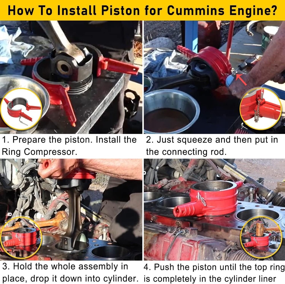 Piston Ring Compressor Tool 7040 & Anti-Polishing Rings for Cummins ISX QSX C-15 7040 Piston Ring Compressor Tool, Piston Ring Compressor Adapter & Anti-Polishing Ring Kit For Cummins ISX QSX, Caterpillar (CAT) 3400, C-15 5.4" Bore For CAT 3406, 3408, C15 &CUMMINS ISX QSX 7040 Piston Ring Compressor For CATERPILLAR 3400, 3406, 3408, C15 & CUMMINS ISX QSX 15 -- 5.4" Bore Piston Ring. REPLACE OEM 7040 5.4" Bore Design with connecting rod. Assures proper piston installation, reducing the possibility of broken rings. For CAT 3406, 3408, C15 &CUMMINS ISX QSX Piston Ring Compressor Adapter & Anti-Polishing Ring For CATERPILLAR 3400, 3406, 3408, C15 & CUMMINS ISX QSX 15 -- 5.4" Bore Piston Ring. Piston Ring Compressor Adapter Alternative to 5299339. Anti-Polishing Ring Alternative to 5299448, 5299447. Used in conjunction with an existing piston ring compressor to install piston rings into antipolishing cylinder liners. How To Install Piston For Cummins ISX ? Step 1 Prepare the piston. Flip the compressor over. Install the Ring Compressor. Step 2 Just squeeze and then put in the connecting rod to hold the whole part in place. Step 3 Install the Piston Ring Compressor Adapter. Hold the whole assembly in place, drop it down into cylinder. Step 4 Push the piston until the top ring is completely in the cylinder liner. Complete Kit (1) 7040 Piston Ring Compressor 5.4" Bore - PT-7040 (1) Piston Ring Compressor Adapter - 5299339 (1) Anti-Polishing Ring - 5299448 (1) Anti-Polishing Ring - 5299447 For Caterpillar 3400, 3406, 3408, C15 & Cummins ISX QSX -- 5.4" Bore Piston Ring Special Design Help you to easily flip the compressor over. 5.4" Bore For CATERPILLAR 3400, 3406, 3408, C15 & CUMMINS ISX QSX 15 -- 5.4" Bore Piston Ring. Connecting Rod Install the pin will help you squeeze the compressor and hold the whole part in place. Top Quality Strong Cast Steel. Ring Compressor help for piston installation. Time & Money saver! Payment Delivery details Terms of sales Returns Contact us Payment 1. All major credit cards are accepted through our secure payment processor Payoneer. 2. Please make sure your Shipping address is correct before you pay, cause it cannot be changed once the order shipped out. Delivery details 1. We only ship to confirmed ebay addresses. Your ebay address MUST MATCH your Shipping address. 2. Please read the shipment and payment detail carefully before you bid. Terms of sales ★If there are any problems with our products, Please feel free to contact us. We will always here to solve them for you. We should try our best to make a happy easy transaction. ★If you are satisfied with our products and our service, please tell your friend and leave us positive feedback. If you are not satisfied with our products or service, please DO tell us. Returns 100% Satisfaction Guarantee: Your satisfaction is our priority. We strive to give our customers excellent service.All our products support 30-Day money-back guarantee, 12-Month warranty for quality-related issues. Simply return it for your warranty. Contact us Any Questions,Just feel free to contact us on eBay.We will reply you in 1-2 business day.