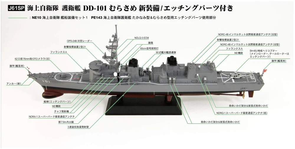 Product Introduction The Murasame class is the third generation of gas turbine propulsion general-purpose destroyers, following the Hatsuyuki and Asagiri classes, and nine ships were built by 2002. The first ship, the Murasame, was completed in March 1996, and was deployed to the Indian Ocean under the New Anti-Terrorism Special Measures Law, and was involved in overseas activities such as convoy escort off the coast of Somalia as part of anti-piracy measures. It is currently part of the 1st Escort Squadron, 1st Escort Group in Yokosuka. ・Includes a complete set of parts from the new equipment set "NE10: 1/700 JMSDF Ship Equipment Set 1" and one etching part from "PE143: 1/700 JMSDF Escort Ship Takanami Class & Murasame Class". By replacing parts such as armaments and various antennas, you can precisely reproduce the ship. ・Decals reproduce the current helicopter landing sign and the new markings for the walking zone. ・Includes 1 SH-60J patrol helicopter. ・Can choose between offshore or full hull model. ・Size when completed: Total length 216mm. ・Includes 1 ship. *The image shows the NE10 parts and PE143 assembled and painted. *This product is a plastic model that requires assembly and painting. *Separate adhesives, tools, paints, etc. are required for assembly and painting. ☆PRODUCTS☆ Please check the Photo ☆PAYMENTS☆ We accept PayPal and all major Debit / Credit Cards. We can only ship your item after your payment clears. We ship within 10 days of payment. ☆CHECKOUT☆ Please check your address before paying because we can ONLY ship to addresses that are entered before placing the order. We cannot change an address after the order has already been placed. ☆SHIPPING☆ Packages:Box and Bubblerup Packages usually leave our warehouse within 5-7 days of payment. Weekend orders will ship on Monday or Tuesday. We provide valid Tracking Numbers for all orders. ~~For Expedited shipping~~ For Expedited, the item will arrive in about 2-6 days after shipping. ~~For economy shipping~~ Economy shipping to the US (with some exceptions) will take approximately 7-12 business days to arrive after shipping. Even if you select economy shipping, it may be changed to Expedited instead of Economy depending on the size of the product or the size of the package. If it is changed to Expedited, there will be no additional charge, so please rest assured. Only for shipments to Australia, items will be shipped by Japan Post's EMS instead of FedEx (arrival schedule may change slightly) ☆International Packages:☆ We ship to all US Territories, Europe and Asia and Middle East and Australia and Canada including Guam All our international packages ship under the Fedex and Japan Post. ☆CUSTOMER SERVICE☆ If you have any questions or issues, we are at your service. You can email us anytime through eBay messages. ☆RETURN INFORMATION☆ We offer a standard FREE 30 days refund or exchange policy. Item must be returned in original condition in order to receive a full refund. ☆Customs duty☆ Import duties, taxes, and charges are not included in the item price or shipping cost. These charges are the buyer's responsibility. Please check with your country's customs office to determine what these additional costs will be prior to bidding or buying. We will reply to your question or invoice within 3 days. We can't not reply gifts or unreasonable requests such as declared amount.