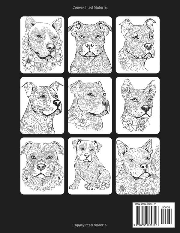 HomePitbull Coloring Book For Adults with 50 Realistic Dog Illustrations to Color