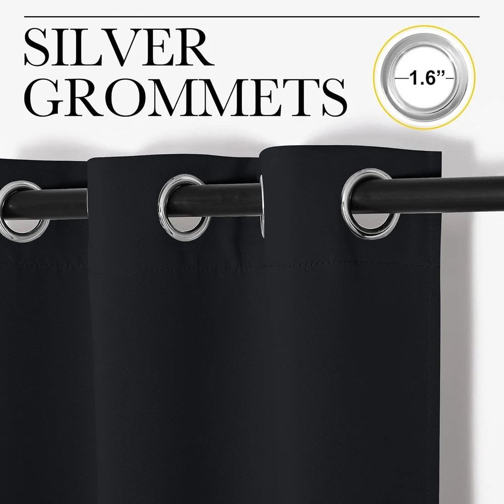 100% Money Back Guarantee if you are not satisfied with your purchase! ____________________ Description: Pitch Black Solid Thermal Insulated Grommet Blackout Curtains/Drapes for Bedroom Window (2 Panels, 42 inches Wide by 63 inches Long, Black) ●Polyester ●READY MADE: Package only includes 2 blackout curtain panels, each 42" wide x 63" long when fully spread, with 6 grommets. Due to handmade craftsmanship, size may vary by 1". No curtain rod included. The fabric is soft and heavy without a liner. ●SERVE WELL: Curtains impede 85%-99% light and UV rays(Dark color curtains work well). Noise-reducing, better TV viewing thanks to the innovative triple weave technology. ●ENERGY SMART: Triple weave blackout fabric balances room temperature by insulating against summer heat and winter chill. Protect your furniture, floors, and artwork from the ravages of the sun, the drapes will pay for themselves over time. ●GOOD TO GO: Thread trimmed and wrinkle-free, ring (1.6-inch inner diameter) fits easily with standard curtain rods. All sets for you to put them up right away. ●EASY TO MAINTAIN: blackout curtains are made to last. The machine washable in cold water, tumble dry. Quick ironing or steam clean when needed. Visiting the NICETOWN store, find out your favorite curtains. ___________________ 100% Money Back Guarantee: We offer 30 Day Money Back Guarantee from the day you purchased if you’re not satisfied with your product. If you have any questions about our products, please contact us as soon as possible. Customer satisfaction is our absolute priority. Shipping: We are always working hard to ensure your package arrives as soon as possible. Please understand that some factors like weather, high postal traffic, and the performance of shipping companies are outside of our control. We offer free shipping to the lower 48 states and ship within 3 business days of payment, usually sooner. We do not accept P.O. Boxes. Please provide a physical address. You will be notified via eBay messages as soon as your items ship. Delivery: We will ship out the item in 2-3 working day after receiving the payment. Usually the delivery takes 2-5 business days. If you don't receive the items after 10 days, please feel free to contact us. You will get a replacement or a full refund. Please DO NOT open a return request or leave negative feedback without asking for help. Returns (Get Free Return Label): We offer a 30-Day Return Policy on defective/wrong items or items which you are not completely satisfied with. You have the option for a full-refund or an exchange of the item. No need to buy eBay return label. Contact us via eBay messages and get free return label. Returned items must be in all of the original packaging and include all of the original accessories or items that came with it. The item and package should be in original condition. Contact Us: Any queries or issues incurred, please feel free to contact us via eBay message, we will get back to you within 24 hours. Please DO NOT open a return request or leave negative feedback without asking for help. Feedback: Your feedback is very important to us. After you get your package and you are satisfied with our service, please leave us positive feedback. We are highly appreciated for your POSITIVE feedback and 5 stars. Enjoy shopping.