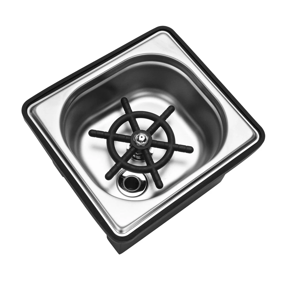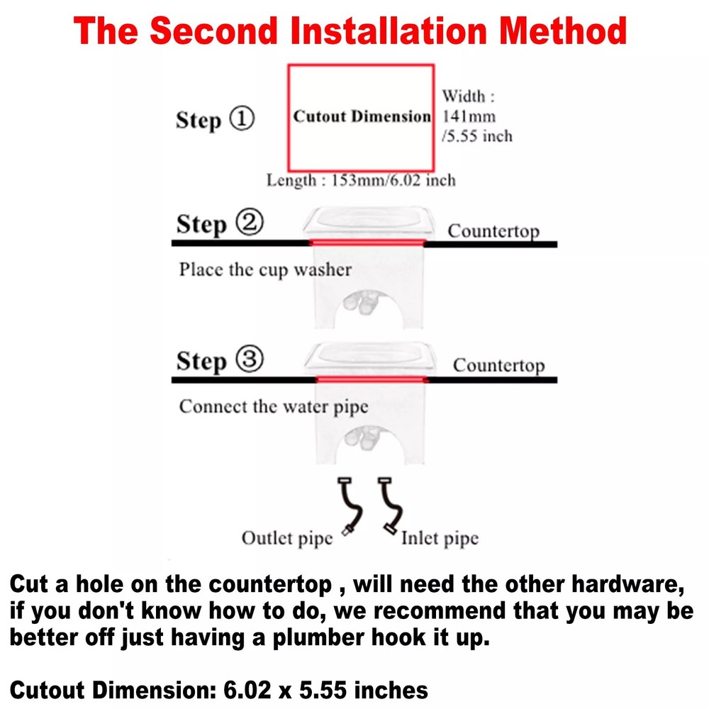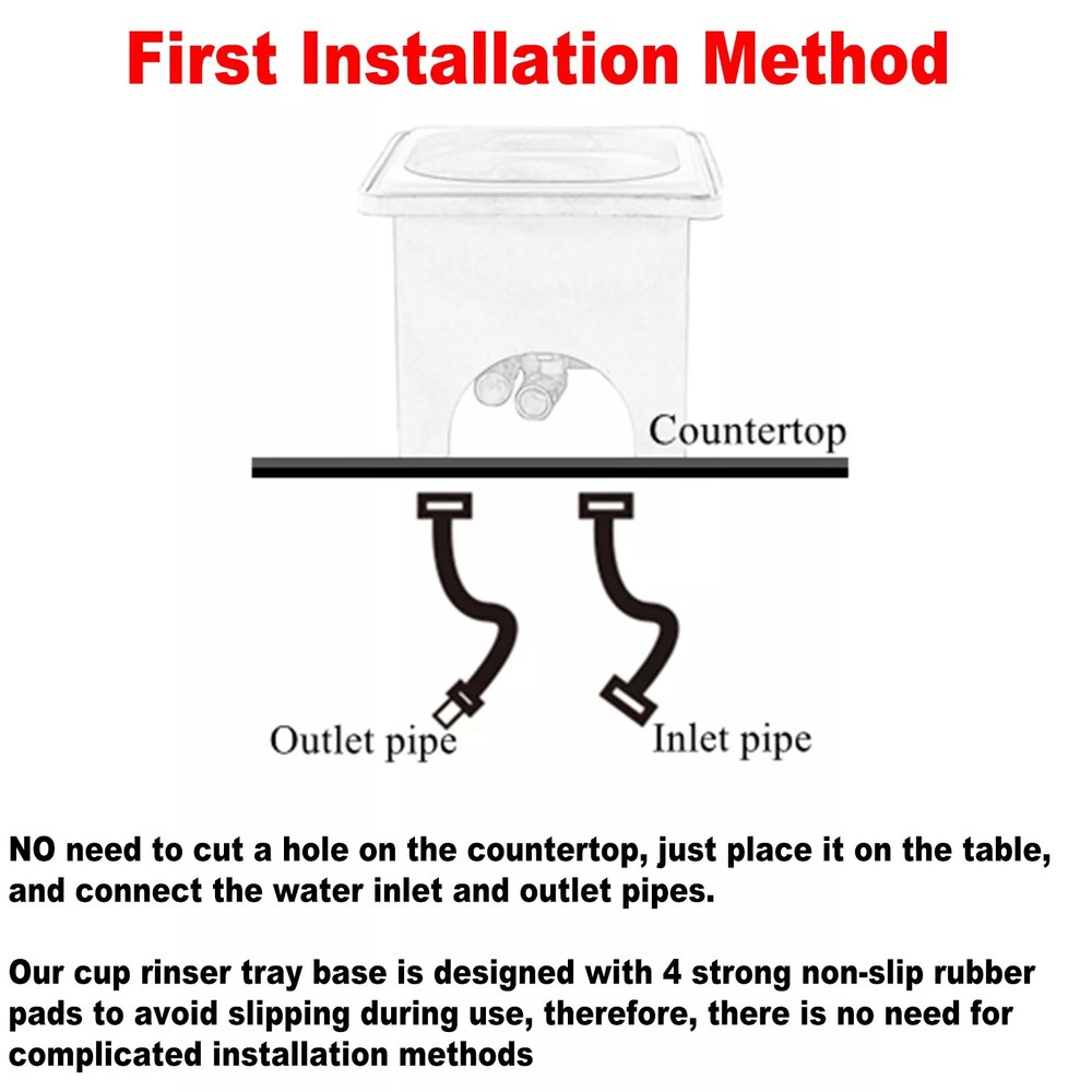 Pitcher Glass Rinser Cup Washer Multi-Angle Nozzle Cleaner Sink Two Type Install Descriptions: --Easy Cleaning: This glass washer has multi-angle water outlet cleaning head to realize multi-angle nozzle cleaning. It can quickly rinse off the residual milk inside the milk cup, saving time and effort. When you only have one free hand available, removing milk and formula residue from narrow bottles/cup can be difficult, let this glass rinser remove residue in seconds with one simple push down: Just place the cup on the nozzle rack and gently press the bottom of the cup to automatically spray water for cleaning. --Premium Material: This spray rinser sink is made of quality stainless steel and plastic, durable and sturdy, convenient and practical. --Widely Applications: This cup rinser installs into a standard kitchen countertop or sink hole and only takes a few minutes. Perfect for quickly cleaning barware, coffee mug, beer cup, milk cylinder, tea cup, etc. --Easy Installation: Simpily connect the pipes(And the Tee Connector if necassary) and put the sink back to the base, and then place it onto table, it'll be good to go. Specifications: Material: 304 Stainless Steel+Brass+Plastic Color: Black+Silver Net Weight: 3.42 lb/1550 g Overall Dimensions: 7.48x6.89x5.71 inches/190x175x145 mm Nozzle Diameter: 4.72 inches /120 mm Water hose length: 39.37 inches / 1 Meter Water hose thread: G1/2 Female Thread Package Includes: 1 x Glass Rinser 1 x Inlet Pipe 1 x Outlet Pipe 1 x 3-way Tee Connector Adapter Instructions NOT included.