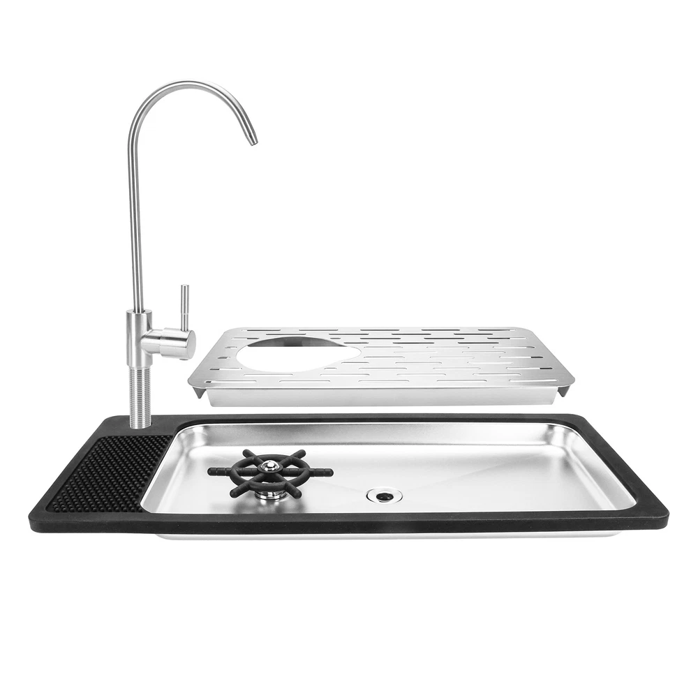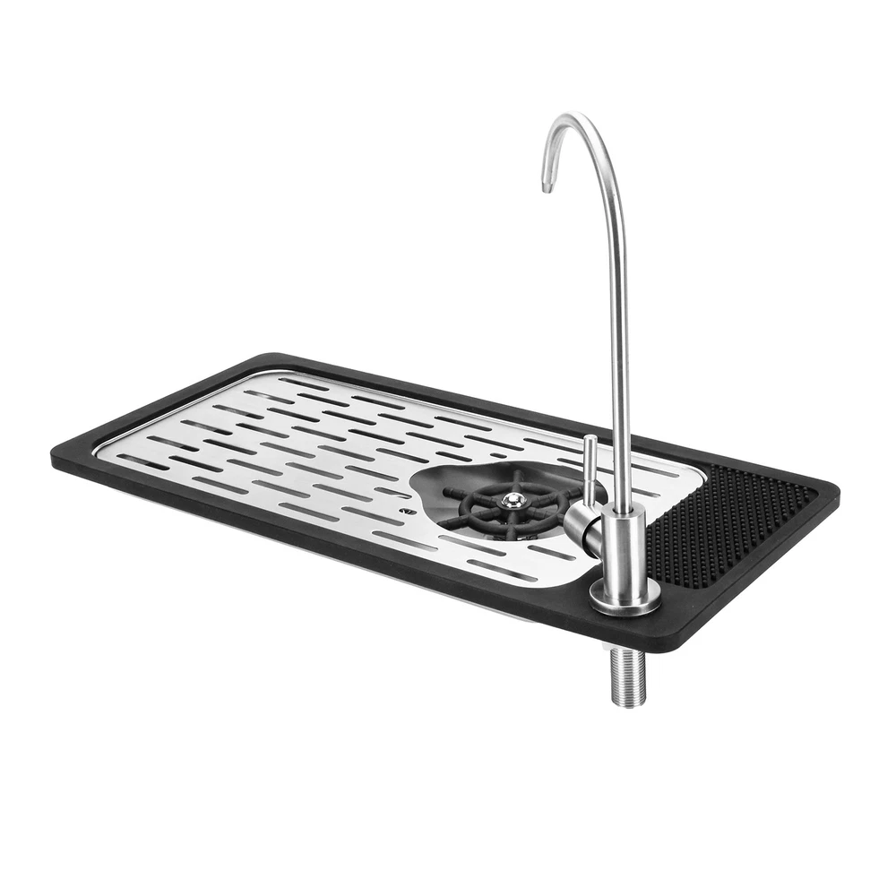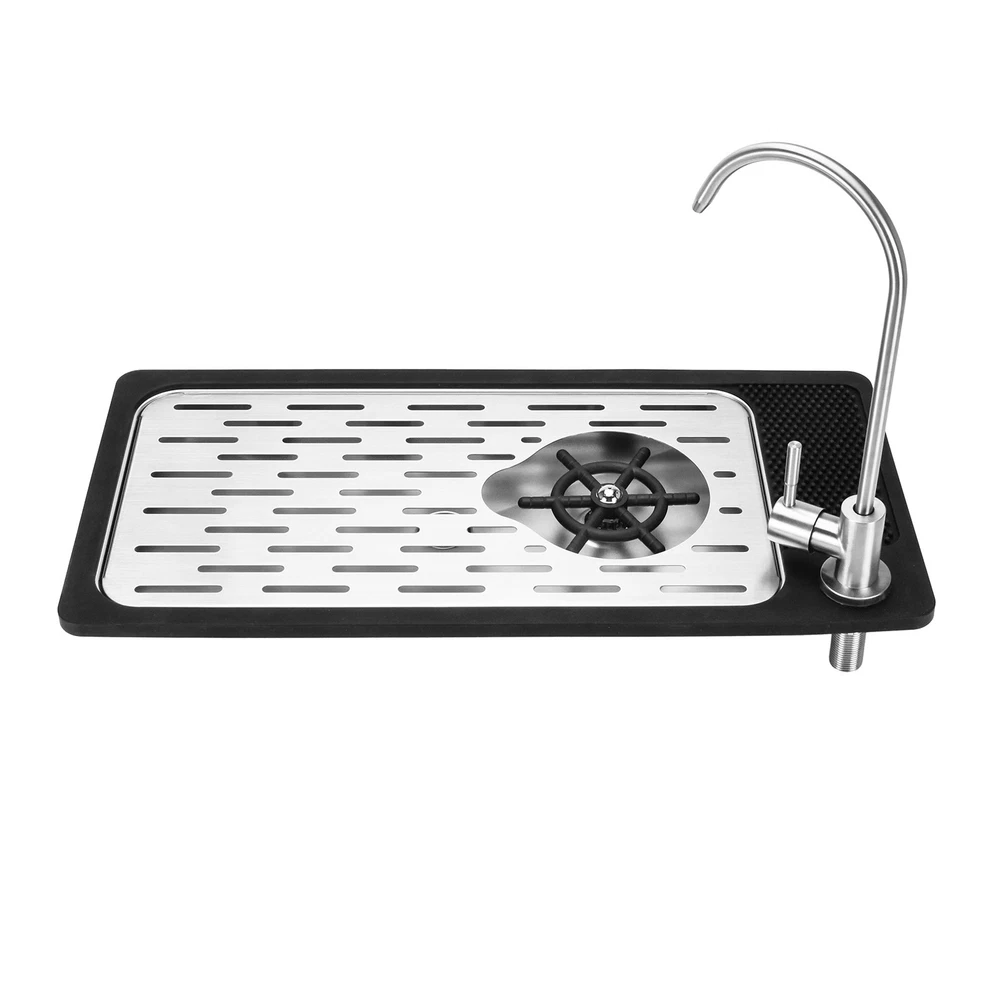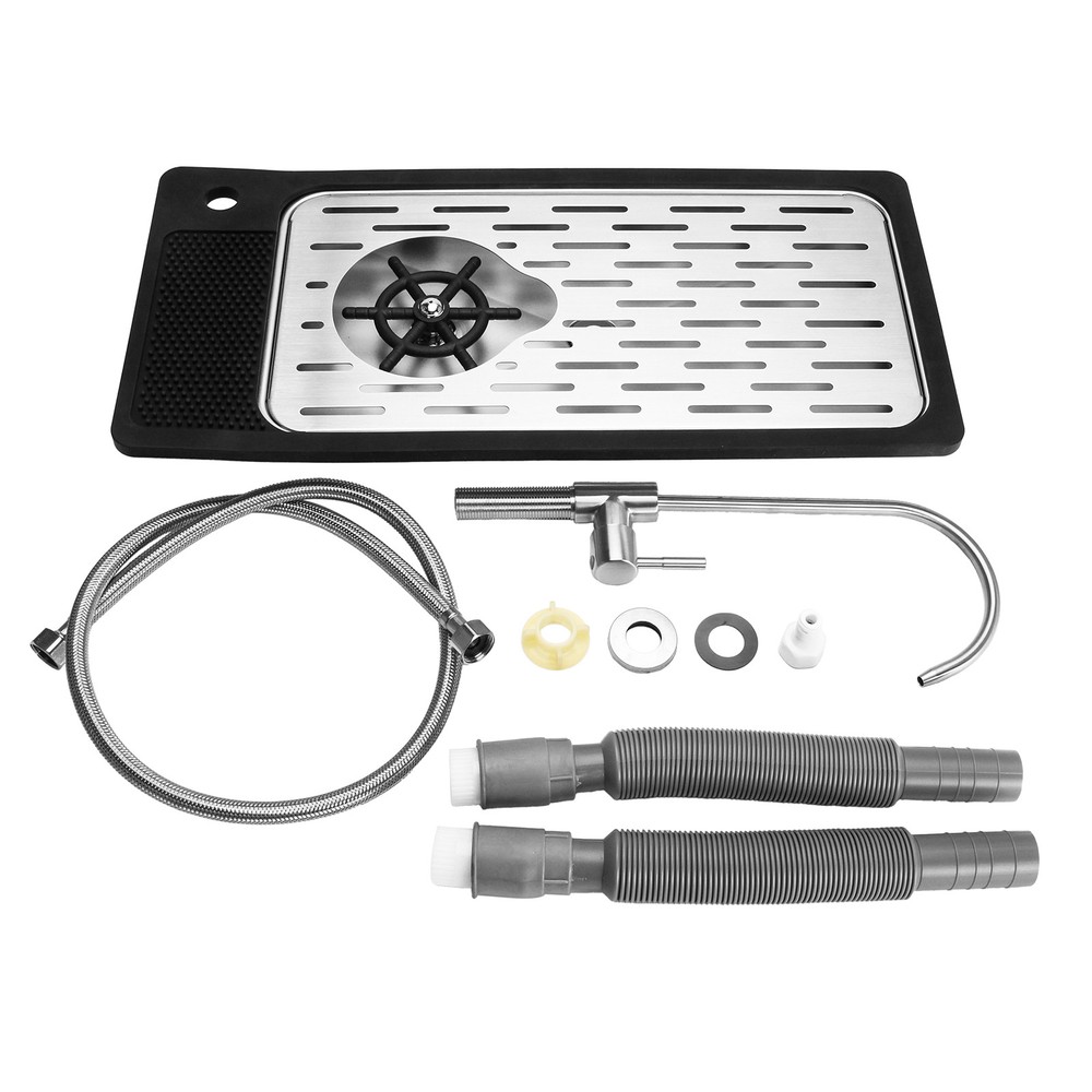 Pitcher Glass Rinser W/Faucet Automatic Coffee Tea Milk Cup Washer Cleaning Sink Descriptions: --The automatic glass rinser/washer is suitable for bars, pubs, restaurants, hotels, coffee shops, milk tea shops, etc. --Supports multi‑angle washing, good cleaning effect, practical and convenient. --Comes with a push-button type faucet, you can fill the glass with just one hand. --Free water purifier/filter(Works with 7mm inlet pipe) can be easily installed to the faucet tail pipe with the quick-release design. --With a connector, it is easy to connect with the water pipe, easy to use, and save time and effort. --The wide drain tray allows dozens of vessels. Removable design makes it easy to clean. --The whole rim of the rinser's covered by a piece of silicone mat, which protects the surface of the deck and provides a soft place for the vessels. --Selected high‑quality stainless steel and silicone materials, strong and durable, long service life. Specifications: Condition: Brand New Material: Stainless Steel + Silicone Color: Silver Dimensions: 50*24cm Approx. Hole Size Suggestion: 40.5*21cm Approx. Package Includes: 1 x Pitcher Rinser 1 x Push Button Type Faucet 1 x Water Purifier/Filter 1 x Silicone Mat 2 x Braided Inlet Hose 1 x Plastic Outlet Pipe Notes: * Please allow 0.2-1 cm error due to manual measurement. * Instructions NOT included.