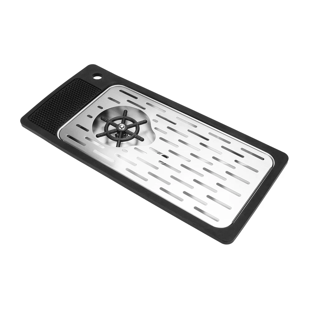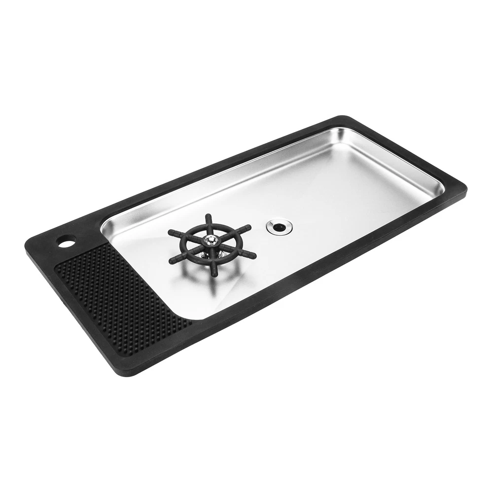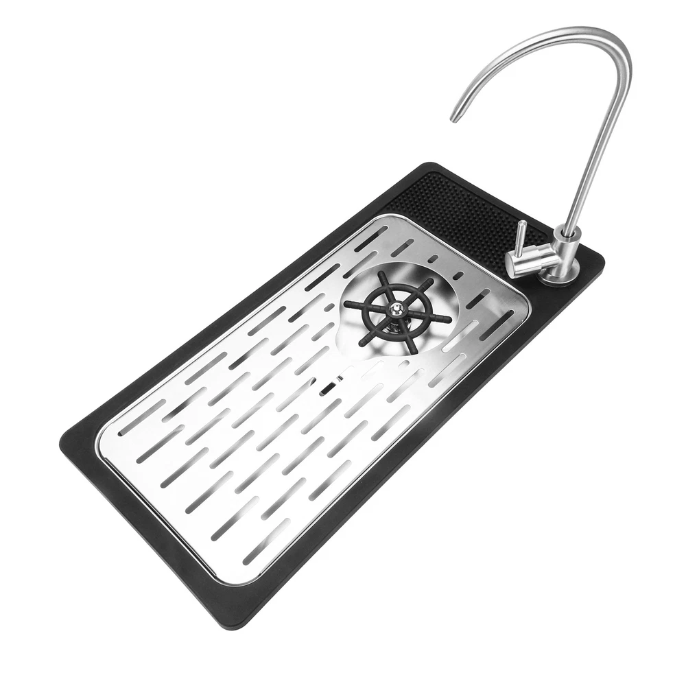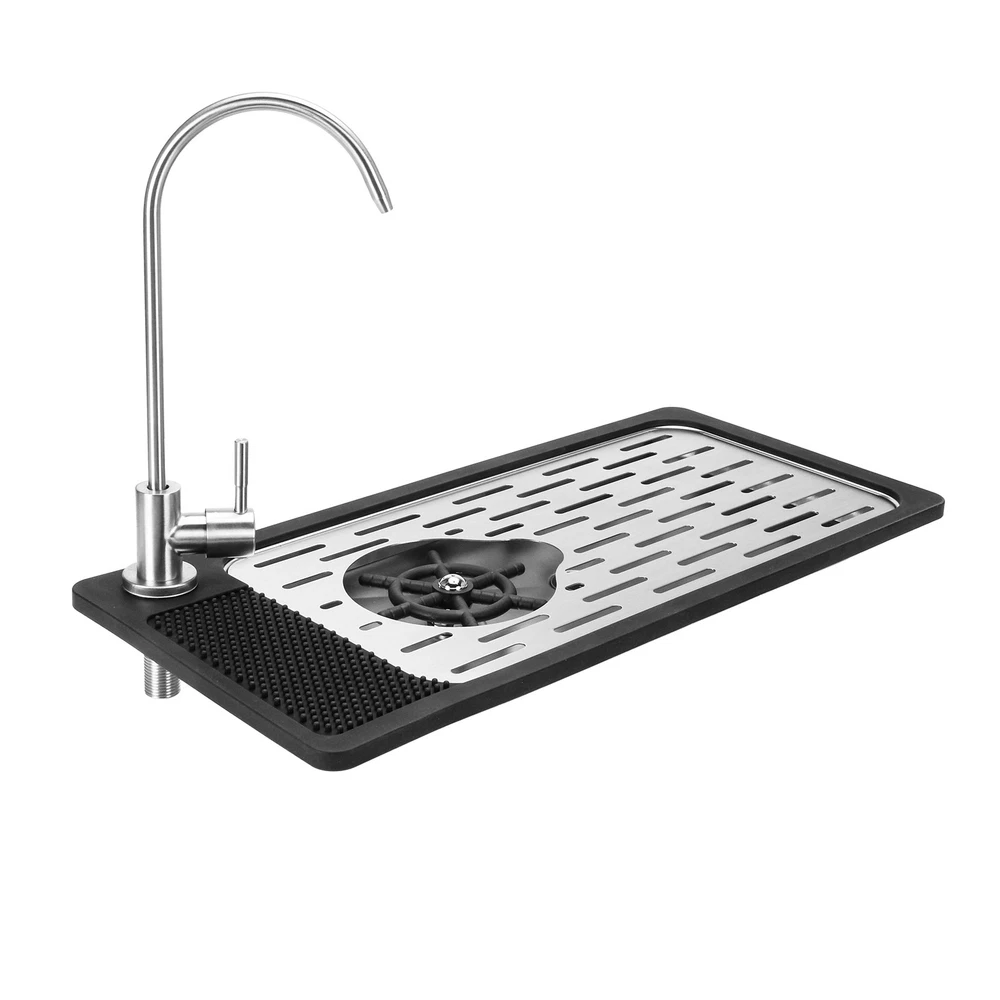 Pitcher Glass Rinser W/Faucet Automatic Coffee Tea Milk Cup Washer Cleaning Sink Descriptions: --The automatic glass rinser/washer is suitable for bars, pubs, restaurants, hotels, coffee shops, milk tea shops, etc. --Supports multi‑angle washing, good cleaning effect, practical and convenient. --Comes with a push-button type faucet, you can fill the glass with just one hand. --Free water purifier/filter(Works with 7mm inlet pipe) can be easily installed to the faucet tail pipe with the quick-release design. --With a connector, it is easy to connect with the water pipe, easy to use, and save time and effort. --The wide drain tray allows dozens of vessels. Removable design makes it easy to clean. --The whole rim of the rinser's covered by a piece of silicone mat, which protects the surface of the deck and provides a soft place for the vessels. --Selected high‑quality stainless steel and silicone materials, strong and durable, long service life. Specifications: Condition: Brand New Material: Stainless Steel + Silicone Color: Silver Dimensions: 50*24cm Approx. Hole Size Suggestion: 40.5*21cm Approx. Package Includes: 1 x Pitcher Rinser 1 x Push Button Type Faucet 1 x Water Purifier/Filter 1 x Silicone Mat 2 x Braided Inlet Hose 1 x Plastic Outlet Pipe Notes: * Please allow 0.2-1 cm error due to manual measurement. * Instructions NOT included.