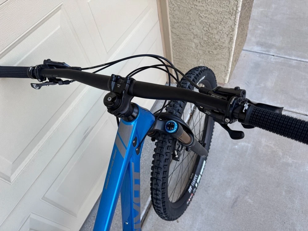 This is a brand new, never ridden, Switchblade v5 frame (2023) that I built up for my wife. She told me just to sell it because she is ALWAYS going to ride her Shuttle SL :) I want to be clear that the fork and cassette and brakes have been used--these three pieces came off of my Switchblade with 2-3 months of use on them; otherwise it is a new bike. Here is the rundown: Fox Factory 36 fork with Grip2 damper (160 mm) paired with a Fox Factory Float X rear shock. The DT X1700 wheels are wrapped in Maxxis DHRII 29x2.4" tires. The drivetrain is: Race Face Aeffect R crankset; Shimano XT chain, shifter, and derailleur (all new) with an XT cassette (used). It has a Fox Transfer (125 mm) dropper (with a Wolf Tooth dropper lever), with Pivot cockpit (bar, stem, saddle, grips). Please understand that this NO RESERVE AUCTION is for the Lower 48 states only. Please make payment or communicate with me within 48 hours of auction closing--I will have the bike carefully packed and shipped within 24 hours of receiving payment. Good luck, and please message me with any questions.