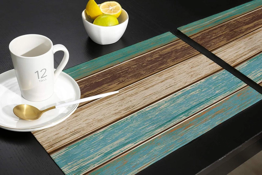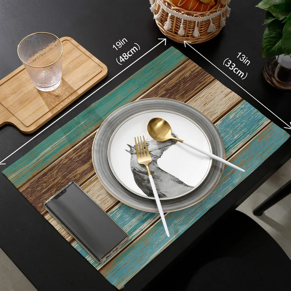 Store New Arrivals Add to Favorite View Feedback Contact Fast deliveries to the customer's home Quality customer service John Make the customers happy! Placemats Set of 6, Retro Rustic Wood Texture Polyester Stain Resistant Table Mats Washable Placemat Decoration for Kitchen Dining Table Teal Green Brown Description Package - St. Patrick's Day Placemats set of 6 for Home Decorations Idea , Size:18"x12"(45cmx30cm), Material - Cotton Line& Polyester Fabric. Well Made Heat Resistant Place Mats - Protect The Table from scratches and stains, no fading, Washable and Easy to clean - Hand wash in warm soapy water and air-dry; if there is stains stuck in the placemat, use a brush and soapy water to clean it. Machine washable. Gift for holidays,spring, St. Patrick's Day,Easter, fall Thanksgiving Christmas.Highly Recommend Table Mat - Suitable for any occasion. You can use it at kitchens, dining tables, coffee tables, hotels and restaurants etc. Purely beautiful, pleasing to the eye. Perfect for kids, men, Women, boys, girls. Personalized Custom Design - Vivid colors & clear image. With state of the art digital printing technology. Long lasting design. No dyes harming health of your family. You can also send us your photo or image to customize your own styles. Product Description Happy St. Patrick's Day /Easter Day! How to eat and have a sense of spring seasonal and holidays atmosphe? You only need a placemat our rustic teal wood placemat is not only an ideal decor to set off the festive atmosphere, but also can be used as a holiday gift for friends and family on St. Patrick's Day,Easter Day Great Kitchen & Table Linens Decor and Accessories Great Kitchen & Table Linens Decor and Accessories Vandarllin Teal&Turquise wood placemats- Farmhouse Accents Place Mats is beautiful centerpieces decorations for your tabletops When you eat regularly,the desktop will be a mess.Fortunately,there is now a placemat that will protect your table or bar from the wear and tear of tableware! Beautiful placemats-Not only do they protect table tops,but they're also elegant and stylish,doubling as eye-catching kitchen or dining table decorations! Hand/Machine Washable and Easy to clean Hand/Machine wash in warm soapy water and air-dry Heat/Stain Resistant Place Mats Protect The Table from scratches,stains and wear or tear of tableware Thick Fabric&Soft Rectangle Placemats-Made of High-quality Cotton&Linen material.Soft and can be folded. Widely usage of Teal placemats -Our placemats can be used Indoors or outdoors.Perfect for daily use and kitchen decor, good match with dark wood table, glass table, white dining table, wooden farmhouse table, brown dinning table. Great for BBQ ,under your coffee maker, patio,outside parties and casual kitchen decor. Great gift idea for all occasions- Great gift for St. Patrick'day,Thanksgiving, Christmas, New Year, Wedding, Mothers Day, Valentines, hostess. PS:Due to different screen display,the color of actual item may vary slightly from images. Item model number VDL-190911-ZDP-HYJ-SLEO00251ZDABVAN Color Teal Green Wood Stripes Material Cotton Line, Polyester Item Weight 11.7 ounces Shape Rectangular Size 18x12 inch x6 pcs Occasion Easter, Christmas, Thanksgiving Number of Pieces 6 Product Dimensions 18"L x 12"W Product Care Instructions Brush,Hand Wash,Machine Washable,Water ABOUT US We offer the best prices around on high quality products. Our E-store includes media such as books, movies, music and games while offering electronics, toys, sporting apparel, clothing, tools, general home, garden items and more. SHIPPING We are always working hard to ensure your package arrives as soon as possible. Please understand that some factors like weather, high postal traffic, and the performance of shipping companies are outside of our control. We offer free shipping to the lower 48 states and ship within 2 business days of payment, usually sooner. We do not accept P.O. Boxes. Please provide a physical address. For shipping outside of the continental USA, we only use eBay's Global Shipping Program. The item is shipped to KY and then sent to the rest of the world. International customers are responsible for all duties and taxes. Continue to 'check out' to calculate costs for shipping the item to your country. Messages regarding eBay's Global Shipping Program MUST be directed at eBay EXCLUSIVELY. RETURNS We offer a 30-Day Return Policy on items in which you are not completely satisfied with. You have the option of a full-refund or an exchange of the item. No returns are available on items shipped outside of the USA PAYMENT We accept PayPal. CONTACT US This page content is yet to come Please ad us to your favorite seller and visit again later Thank You CUSTOMER SATISFACTION We try our very best to make sure every customer is completely satisfied. If there's a problem, message us! We're happy to help. WE ACCEPT