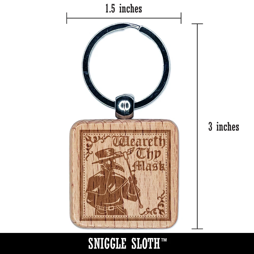 Plague Doctor Weareth Thy Mask Engraved Wood Square Keychain Tag Charm