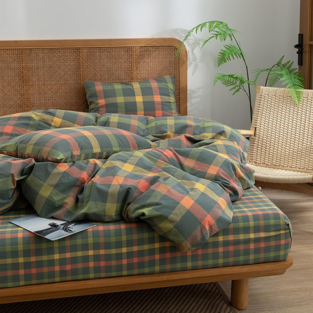 Store New Arrivals Add to Favorite View Feedback Contact Fast deliveries to the customer's home Quality customer service John Make the customers happy! Plaid Duvet Cover Set Queen Washed Cotton Reversible Bedding Multicolor Buffalo Grid Duvet Cover with 2 Pillowcases for Men Women(Orange/Grey/Green,Queen) Description 【Material】Buffalo Plaid Duvet cover made from washed cotton with high density weave,natural,breathable,fast sweat absorption,fade-resistant,definitely working for all gentle skins. 【Modern Design】A farmhouse look plaid gingham duvet covers with Orange,Grey,Green,Yellow,Red - blend together offer a classic and rustic look,colors available tend to be neutral and can easily bring a relaxed, lived-in look to any room's decoration especially the vintage style. 【Size & Package】3 Pieces duvet covet set; 𝐐𝐮𝐞𝐞𝐧: 1 Duvet Cover (90"x90") and 2 Pillow Shams (20"x26"),comforter or insert not include. 【Zipper Closure & 4 Ties】Washed cotton duvet cover with zipper closure,convenient to get your duvet in and out; 4 corner ties to keep your duvet insert in place.2 pillowcase with envelope closure. 【Easy Care】Machine wash in cold water with similar colors.Tumble dry low.Do not bleach.Cool Iron when needed after wash.Recommended washing before use.You will find the bedding set even softer with each wash. Product description Modern Reversible Colorful Plaid Duvet Cover Set More Flower Pattern Style For You Choose Add to Cart Add to Cart Add to Cart Add to Cart Add to Cart Customer Reviews 4.5 out of 5 stars 1,642 4.4 out of 5 stars 2,725 4.4 out of 5 stars 1,559 4.4 out of 5 stars 2,725 4.5 out of 5 stars 1,642 Price $85.99 $ 85 . 99 $59.89 $ 59 . 89 $52.99 $ 52 . 99 $68.09 $ 68 . 09 $68.09 $ 68 . 09 Material Microfiber Cotton Cotton Cotton Cotton Pattern Floral Plaid Flower Stripes Floral Available Size Queen/King Queen/King Twin/Queen/King Queen/King Queen/King Zipper ✔ ✔ ✔ ✔ ✔ Corner Ties ✔ ✔ ✔ ✔ ✔ Style Farmhouse Material Cotton Weave Type Percale Pattern Plaid Theme Plaid Number of Pieces 3 Unit Count 3.0 Count Batteries required No Pillowcase Quantity 2 Pillowcase Width 20 Inches Seasons All, Fall, Summer, Winter Included Components Duvet Cover, Pillowcase Item dimensions L x W x H 90 x 90 x 1 inches Item Weight 3.08 pounds Pillowcase Length 26 Inches Sham Quantity 2 Color # Multicolor Plaid Thread Count 300 Product Dimensions 90 x 90 x 1 inches Product Care Instructions Machine Wash Size Queen(1 Duvet Cover + 2 Pillow Shams) ABOUT US We offer the best prices around on high quality products. Our E-store includes media such as books, movies, music and games while offering electronics, toys, sporting apparel, clothing, tools, general home, garden items and more. SHIPPING We are always working hard to ensure your package arrives as soon as possible. Please understand that some factors like weather, high postal traffic, and the performance of shipping companies are outside of our control. We offer free shipping to the lower 48 states and ship within 2 business days of payment, usually sooner. We do not accept P.O. Boxes. Please provide a physical address. For shipping outside of the continental USA, we only use eBay's Global Shipping Program. The item is shipped to KY and then sent to the rest of the world. International customers are responsible for all duties and taxes. Continue to 'check out' to calculate costs for shipping the item to your country. Messages regarding eBay's Global Shipping Program MUST be directed at eBay EXCLUSIVELY. RETURNS We offer a 30-Day Return Policy on items in which you are not completely satisfied with. You have the option of a full-refund or an exchange of the item. No returns are available on items shipped outside of the USA PAYMENT We accept PayPal. CONTACT US This page content is yet to come Please ad us to your favorite seller and visit again later Thank You CUSTOMER SATISFACTION We try our very best to make sure every customer is completely satisfied. If there's a problem, message us! We're happy to help. WE ACCEPT