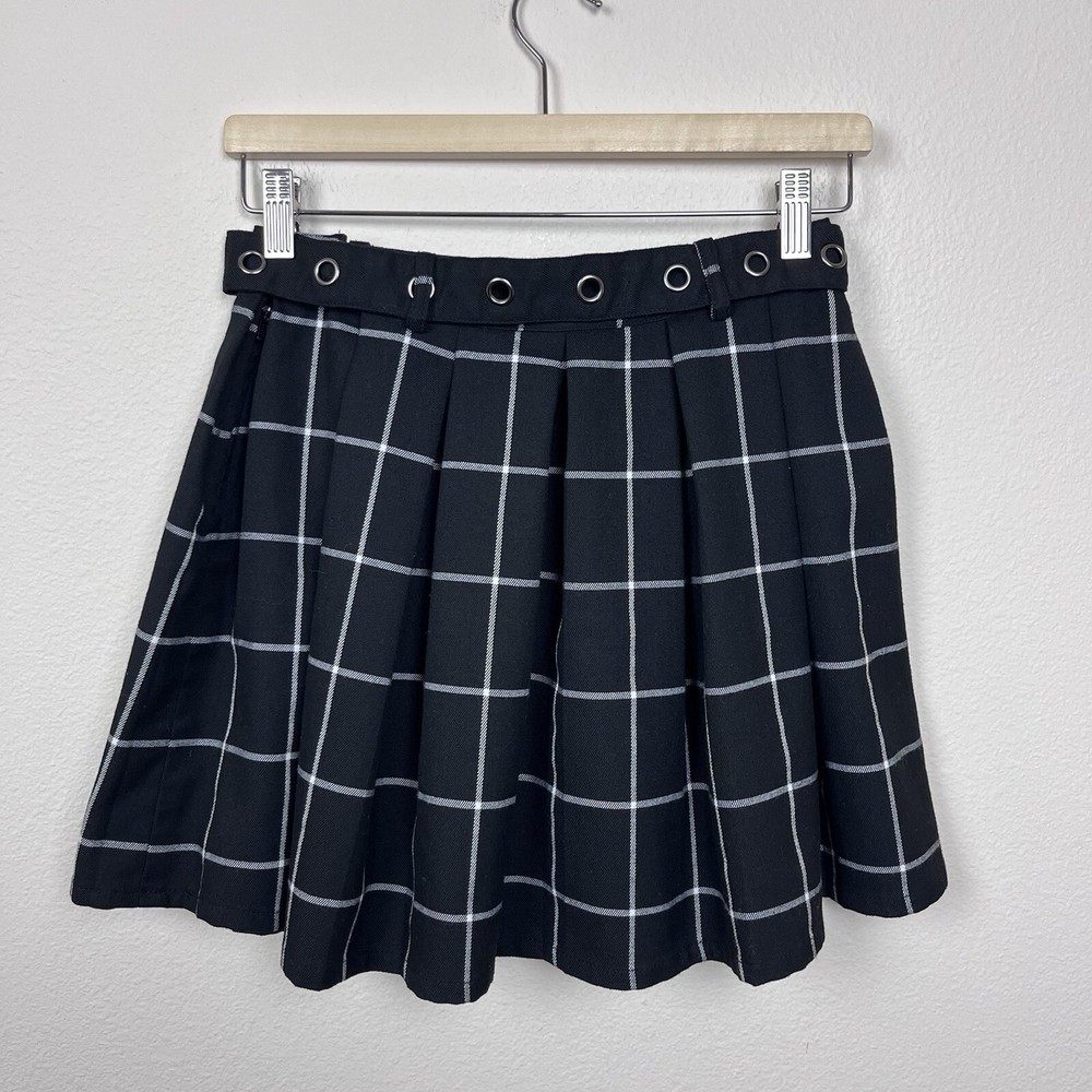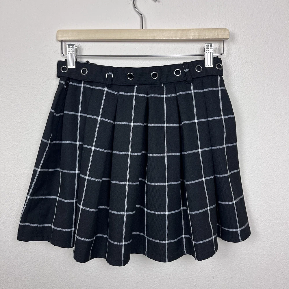 Hot Topic Womens Skirt Rayon, polyester and spandex blend Mini Pleated Belt Grid plaid Academia Preppy Schoolgirl Gothic Classic Good preowned condition Measurements in photos Size S