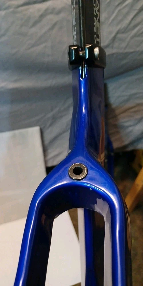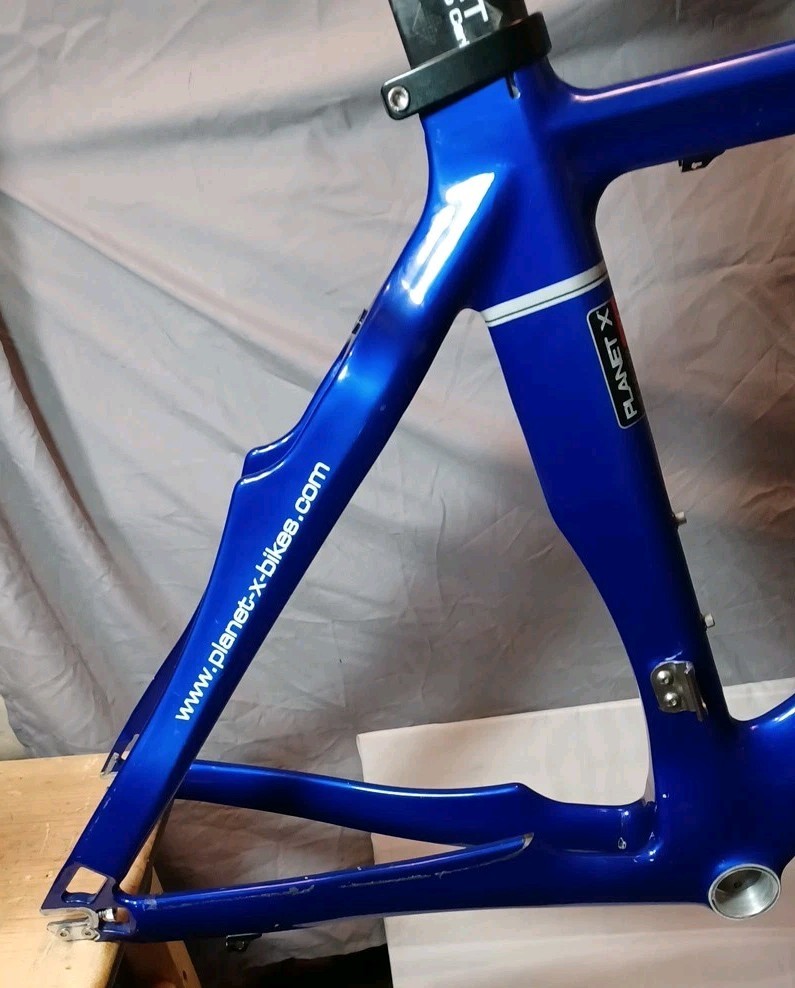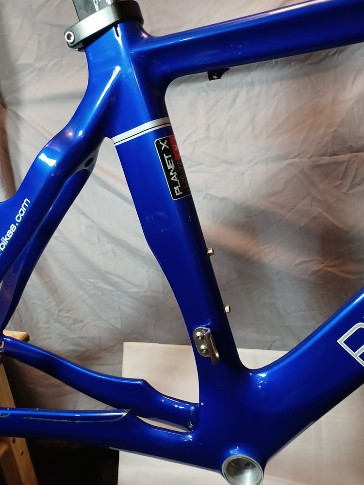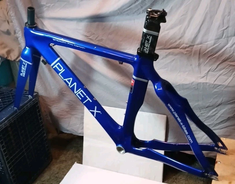 Used track frame measurements: (a) 48cm seattube, (b) 50cm toptube, (c) bb offset 6.5cm, (d) chainstay length 41cm, (g) fork center 57cm, (h) headtube lenth 9cm, (j) reach 38cm, (l) fork length 38cm. Includes: Full Carbon Monocoque Frame, Pro Race Fork, Integrated Ritchey Headset, Areo Seatpost, Micro Adjust Saddle Clamp, Seatpost Clamp, BB Shift Cable Guide, Barrel Adjustable Downtube Cable Stops, Integrated Rear Wheel Alignment Adjusters, Front and Rear Derailleur Brackets. Used track frame so there are some chips on the clear outer layer and have been sealed with a clear hardener. No penetration into the carbon fiber. Most notable is the left headtube area that has some scuffs on the clear other, no penetration and on the fork crown race, paint chip. Chainstays have some rubbing from tire and chips on the chainstay. Protective cover has been installed after the fact. See pictures and ask for more of needed because this is carbon fiber, I rarely resell carbon and when I doom confident it is sound. I've had carbon failures personally and would not sell something that I wouldn't ride. Please review all photos and listed measurements carefully. The item(s) shown and described are sold as is. Any KNOWN flaws or issues will be noted in the description. If you need clarification on measurements, have any other questions or need additional photos feel free to message me. I do my best to research and provide accurate information but mistakes are inevitable so informing me would be highly appreciated so I can edit any discrepancies. Some items are difficult to price so I'm open to all Reasonable offers, message me if the offer option is not available or if shipping is the issue and we can work something out. By placing a bid or using buy it now the buyer agrees to the following terms and conditions: - Every effort has been made by the seller to inspect, photograph and accurately describe this item's condition, however all items are sold AS-IS. - Buyer acknowledges that bicycling and outdoor sports are are potentially dangerous activities involving physical risk. It is the buyer's responsibility to ensure products are installed by a qualified professional and utilized safely--the seller is not responsible for injury/damage that may arise from the buyer's intended or unintended use of this item.