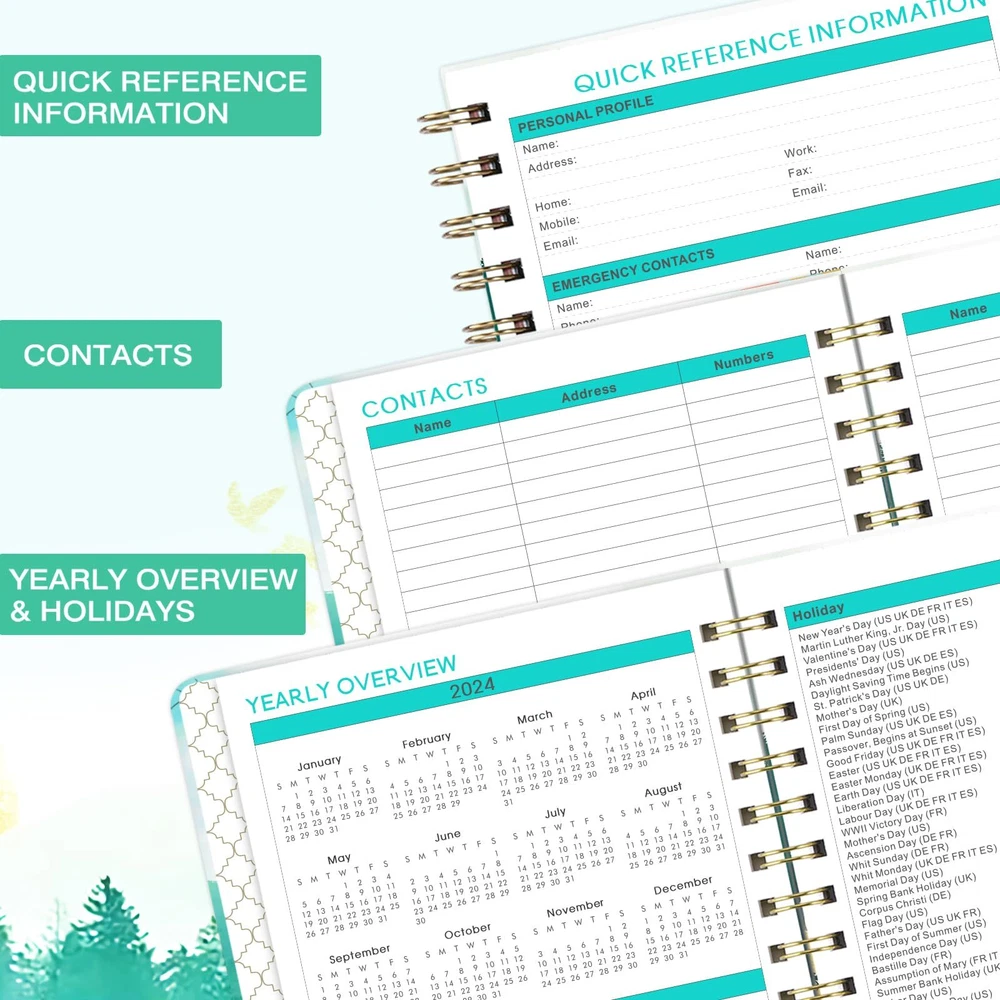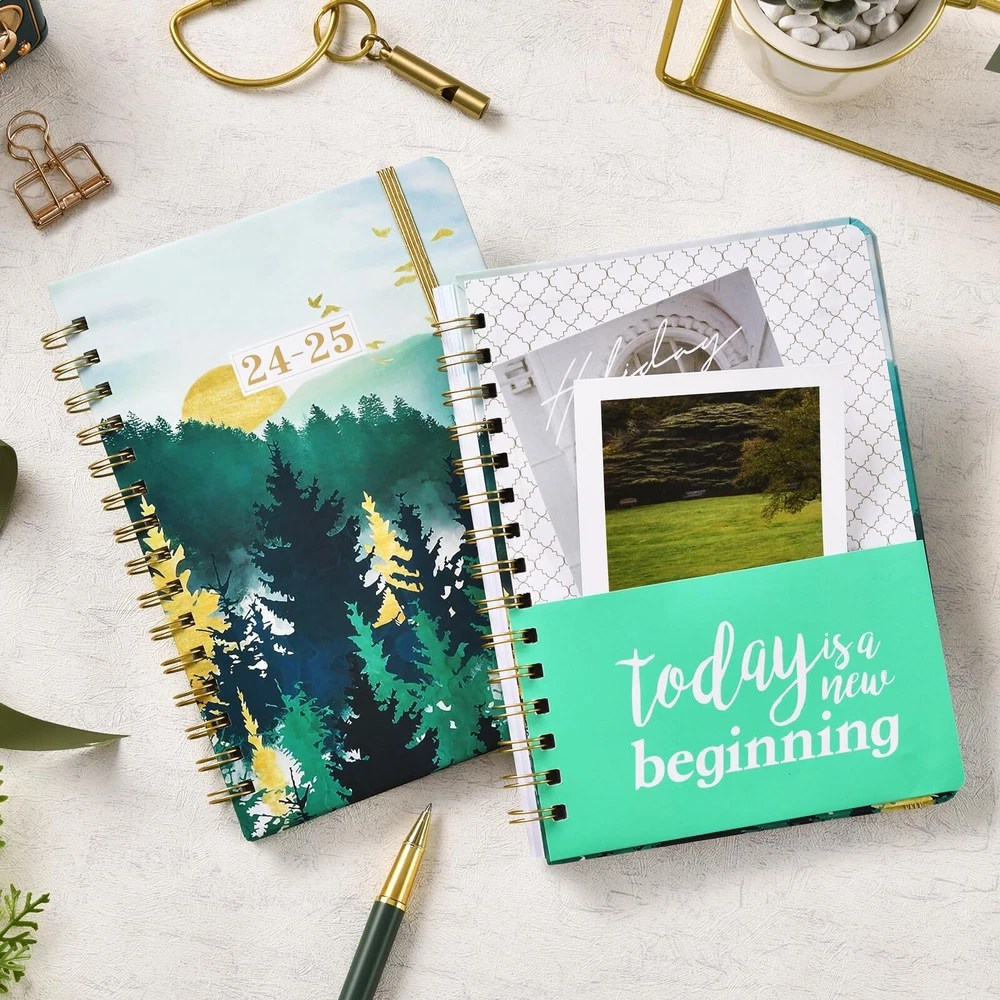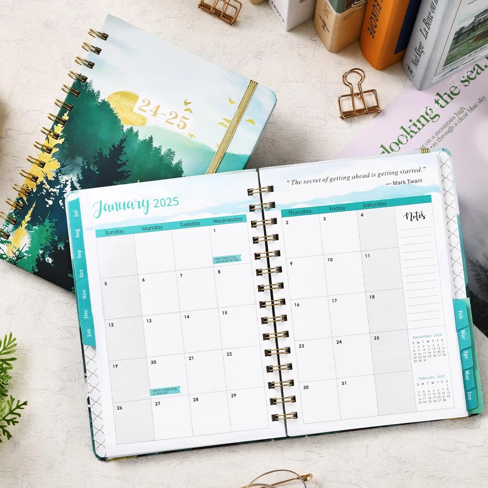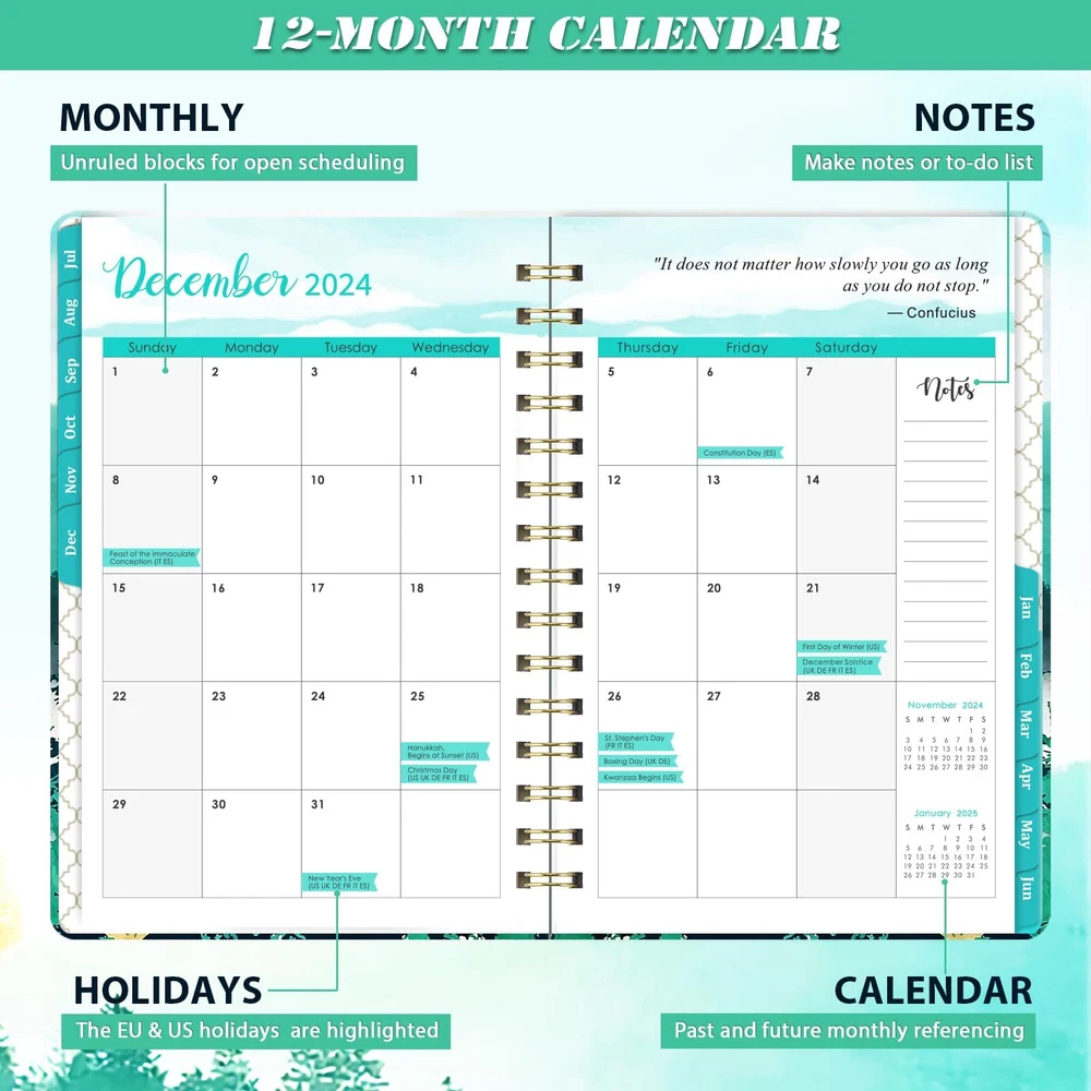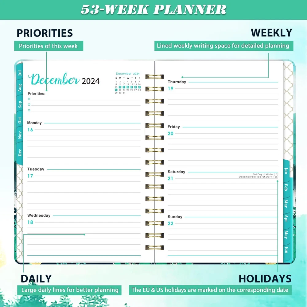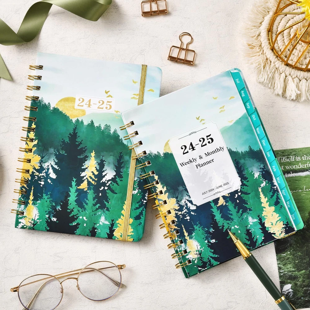 πŸŽ„ 2024-2025 Planner Overview - The planner 2024-2025 date from JULY 2024 to JUNE 2025, measured 8.5''x 6.4'', featuring 12 months of weekly and monthly pages, it's convenient to take in a school bag or handbag, suitable for note-taking for your next school year. πŸŽ„ Monthly Planning Pages - Each monthly pages of this 2024-2025 planner contains an overview of the month and a notes section. There are unruled daily blocks in each monthly page for your monthly planning. Besides, marked major holidays remind you of each important date. the Notes Section can list your priorities of the month. πŸŽ„ Weekly View Pages - The weekly view pages of this academic planner 2024-2025 contains ample lined space from Monday to Sunday for your to-do list. You can tick one item after you finish one thing. The weekly view pages can help you keep track of every day with a clear weekly view. πŸŽ„ Content Pages Design - 12 months of monthly pages with past and future monthly referencing + 12 months of ample lined weekly pages with top priorities section + 2024-2026 calendar overview + 2024-2025 holiday pages + 2 contact pages. This 2024-2025 planner focus on meeting all your needs. πŸŽ„ Functional Designs - | Inner Pocket | Elastic Closure | Flexible Hardcover | Strong Twin-Wire Binding | Planning Pages | Premium Thick Paper | Contacts | Quick Reference Information | Yearly Overview | Holidays.