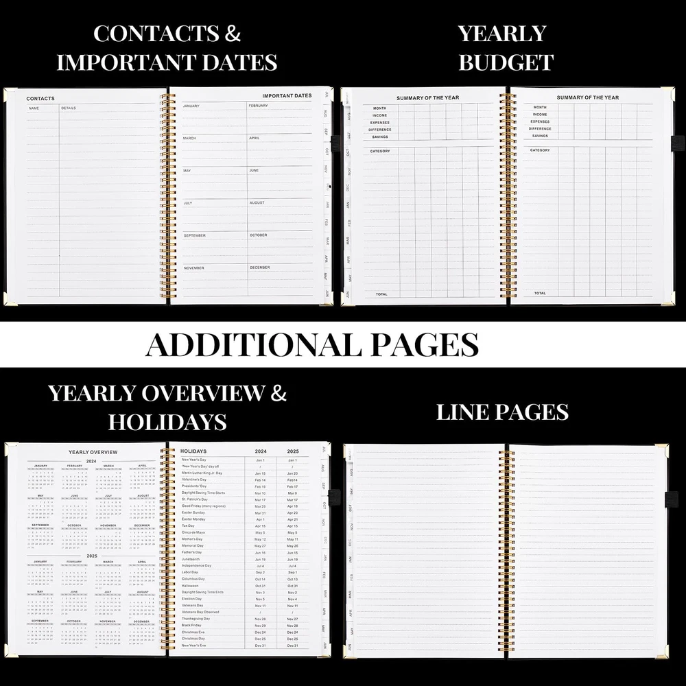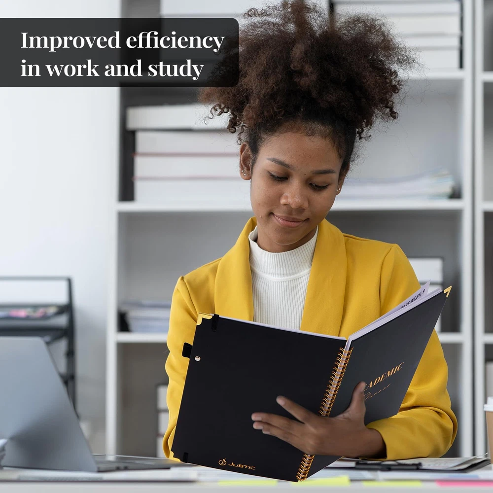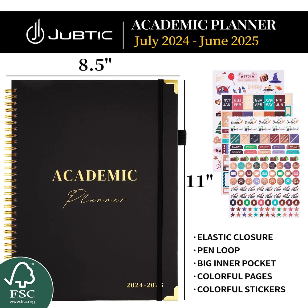Planner 2024-2025, Academic Planner July 2024- June 2025, Daily Weekly and Monthly Planner 8.5 * 11” with Monthly Tabs, School Planner for Student/Teacher, Spiral Bound, Large -Black 12-MONTH DATED CALENDAR: The calendar 2024 planner runs from July 2024 to June 2025, allowing for comprehensive yearly planning. Include monthly calendars with space for notes, goals, and key dates spanning the academic year. Highlight important holidays, breaks, and significant events to help you stay organized and ahead of your schedule. 52 WEEKS WEEKLY LAYOUT: This 2024-2025 yearly planner design a 2-page weekly spread starting from Monday to Sunday. Provide ample lined writing space for each day to record appointments, tasks, and notes efficiently. At the top of week’s goals to help focus on goals. This layout will help you prioritize your objectives and manage your weekly tasks effectively, ensuring productivity and progress throughout the academic year. PRACTICAL ADDITIONAL PAGES: Incorporate practical additional pages in your academic planner, such as a yearly overview for 2024-2025 showcasing holidays and key dates. Include sections for important contacts and emergency information to keep essential details readily accessible in your planner. SPECIAL DESIGN: The 8.5*11.5” large student planner with 12 monthly tabs that easy for using. Opt for a spiral-bound design for easy page-turning and flexibility in your academic planner. Emboss the cover with gold foil lettering for a touch of elegance and sophistication. Enhance durability with metal protective corners, a secure binding strap, a pen loop for convenient access, and a pocket for storing loose papers or notes. Weekly planner with stickers that can decorate pages. PREMIUM FSC CERTIFIED PAPER & GUARANTEE : This academic planner for 2024-2025 is made of high-quality paper with a weight of 100gsm for a smooth writing experience and reduced ink bleed-through. Choose eco-friendly paper certified by FSC that promote sustainability and responsible sourcing practices. JUBTIC planner guaranteed that If you have any quality issues or are not completely satisfied with our planner, you can contact us through Amazon and we will resolve your issue promptly. 12-MONTH DATED CALENDAR: The calendar 2024 planner runs from July 2024 to June 2025, allowing for comprehensive yearly planning. Include monthly calendars with space for notes, goals, and key dates spanning the academic year. Highlight important holidays, breaks, and significant events to help you stay organized and ahead of your schedule. 52 WEEKS WEEKLY LAYOUT: This 2024-2025 yearly planner design a 2-page weekly spread starting from Monday to Sunday. Provide ample lined writing space for each day to record appointments, tasks, and notes efficiently. At the top of week’s goals to help focus on goals. This layout will help you prioritize your objectives and manage your weekly tasks effectively, ensuring productivity and progress throughout the academic year. PRACTICAL ADDITIONAL PAGES: Incorporate practical additional pages in your academic planner, such as a yearly overview for 2024-2025 showcasing holidays and key dates. Include sections for important contacts and emergency information to keep essential details readily accessible in your planner. SPECIAL DESIGN: The 8.5*11.5” large student planner with 12 monthly tabs that easy for using. Opt for a spiral-bound design for easy page-turning and flexibility in your academic planner. Emboss the cover with gold foil lettering for a touch of elegance and sophistication. Enhance durability with metal protective corners, a secure binding strap, a pen loop for convenient access, and a pocket for storing loose papers or notes. Weekly planner with stickers that can decorate pages. PREMIUM FSC CERTIFIED PAPER & GUARANTEE : This academic planner for 2024-2025 is made of high-quality paper with a weight of 100gsm for a smooth writing experience and reduced ink bleed-through. Choose eco-friendly paper certified by FSC that promote sustainability and responsible sourcing practices. JUBTIC planner guaranteed that If you have any quality issues or are not completely satisfied with our planner, you can contact us through Amazon and we will resolve your issue promptly. Shipping from the USA All of our products are shipped from the USA, ensuring quick delivery to your destination. Payment We offer the following payment methods: PayPal, credit card, bank transfer, and eBay's secure payment system. Free Shipping & Free Returns Shipping within the USA is FREE. Additionally, any return is absolutely free for you. Risk-Free Purchase You have the option to return an item within 30 days without any justification. We cover the return shipping costs! Fast Shipping We ship immediately upon receipt of payment. Generally, the package is delivered within 2-3 days in the USA. If it takes longer, we will contact you. Quality and Costs Made in Europe, USA, China No customs fees or additional charges Total satisfaction guarantee Invoice with declared VAT available upon request in .pdf format Feedback Your feedback is very important to us. After you pay for your purchase, you will automatically receive positive feedback from us.