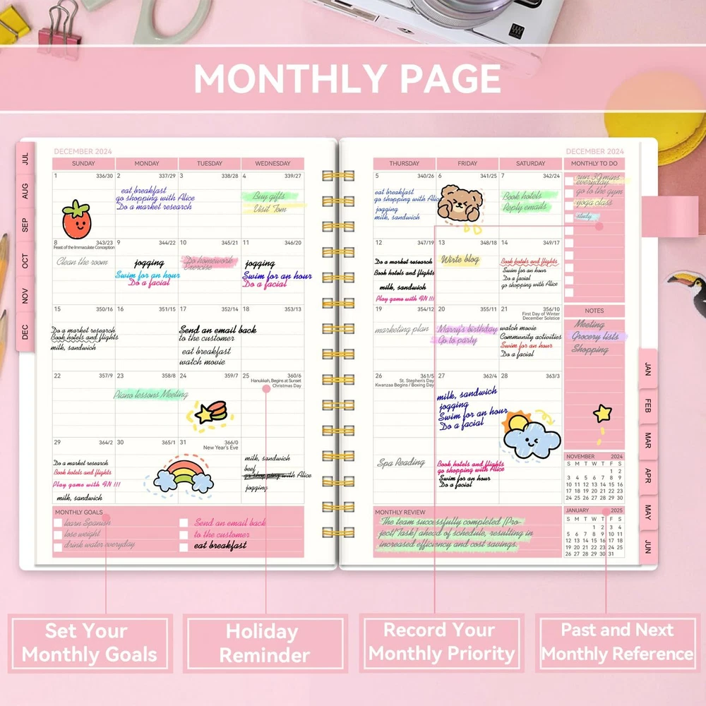 Planner 2024-2025 Weekly and Monthly, Academic Planner runs from Jul.2024 - Jun.2025, AIMPEAK Calendar Planner for Women, Monthly Tabs, Spiral Binding, Pink Garland, 5.5"x8.5" 📒Functional 2024-2025 Planner: This academic planner can help to increase your productivity and achieve your goals. Designed from Jul.2024 - Jun.2025, featuring 12 months of monthly and weekly pages for easy year-round planning. Functionally designed additional pages including 2024-2025 calendar overview, personal information, goals and plans, important dates page, 2024-2025 holiday pages, contact pages and notes pages. 📒Clear Monthly Overview: Our planner 2024-2025 contains 12 months of monthly pages, ready with monthly tabs for quick reference. Richer content contains monthly goals, to do list, reviews, major holidays listed, elapsed and remaining days noted. Keep track of important deadlines, special events and more of every month with clear organization. 📒Richer Weekly Pages: Weekly view pages contain weekly focus, top priority, follow up, appointment, habit tracker, to do list, grateful for, weekly reviews and notes, enough writing place for your detailed daily planning, appointments and activities. Stay organized and motivated each day and week, improve your productivity with this 2024 weekly and monthly planner. 📒Superior Quality:This calendar 2024 planner uses flexible cover, waterproof, can protect all the sheets inside well. The twin-wire binding helps the daily planner to stay flat when open so it's easier to write. The weekly planner contains a inner pocket to store small objects and a pen loop for convenience. High-quality acid-free paper, helps to reduce ink-bleeding and always provide great writing exprience. Excellent texture, with classic and stylish combinations of appearance. 📒After-sale Guarantee: If there are any type of quality issues or if for any reason you're not completely satisfied after receiving our monthly planner, please do not hesitate to contact us, we will be happy to solve your problems as soon as possible. Your satisfaction is our greatest motivation for improvement. 📒Functional 2024-2025 Planner: This academic planner can help to increase your productivity and achieve your goals. Designed from Jul.2024 - Jun.2025, featuring 12 months of monthly and weekly pages for easy year-round planning. Functionally designed additional pages including 2024-2025 calendar overview, personal information, goals and plans, important dates page, 2024-2025 holiday pages, contact pages and notes pages. 📒Clear Monthly Overview: Our planner 2024-2025 contains 12 months of monthly pages, ready with monthly tabs for quick reference. Richer content contains monthly goals, to do list, reviews, major holidays listed, elapsed and remaining days noted. Keep track of important deadlines, special events and more of every month with clear organization. 📒Richer Weekly Pages: Weekly view pages contain weekly focus, top priority, follow up, appointment, habit tracker, to do list, grateful for, weekly reviews and notes, enough writing place for your detailed daily planning, appointments and activities. Stay organized and motivated each day and week, improve your productivity with this 2024 weekly and monthly planner. 📒Superior Quality:This calendar 2024 planner uses flexible cover, waterproof, can protect all the sheets inside well. The twin-wire binding helps the daily planner to stay flat when open so it's easier to write. The weekly planner contains a inner pocket to store small objects and a pen loop for convenience. High-quality acid-free paper, helps to reduce ink-bleeding and always provide great writing exprience. Excellent texture, with classic and stylish combinations of appearance. 📒After-sale Guarantee: If there are any type of quality issues or if for any reason you're not completely satisfied after receiving our monthly planner, please do not hesitate to contact us, we will be happy to solve your problems as soon as possible. Your satisfaction is our greatest motivation for improvement. Shipping from the USA All of our products are shipped from the USA, ensuring quick delivery to your destination. Payment We offer the following payment methods: PayPal, credit card, bank transfer, and eBay's secure payment system. Free Shipping & Free Returns Shipping within the USA is FREE. Additionally, any return is absolutely free for you. Risk-Free Purchase You have the option to return an item within 30 days without any justification. We cover the return shipping costs! Fast Shipping We ship immediately upon receipt of payment. Generally, the package is delivered within 2-3 days in the USA. If it takes longer, we will contact you. Quality and Costs Made in Europe, USA, China No customs fees or additional charges Total satisfaction guarantee Invoice with declared VAT available upon request in .pdf format Feedback Your feedback is very important to us. After you pay for your purchase, you will automatically receive positive feedback from us.