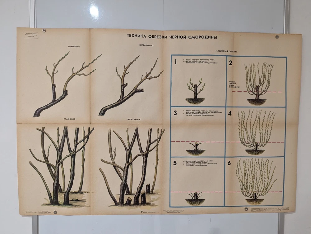 🌻 Plant Vintage Poster 1985 🌿 Soviet Boho Style 🌳 pruning blackcurrant