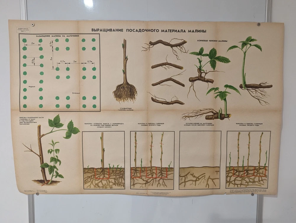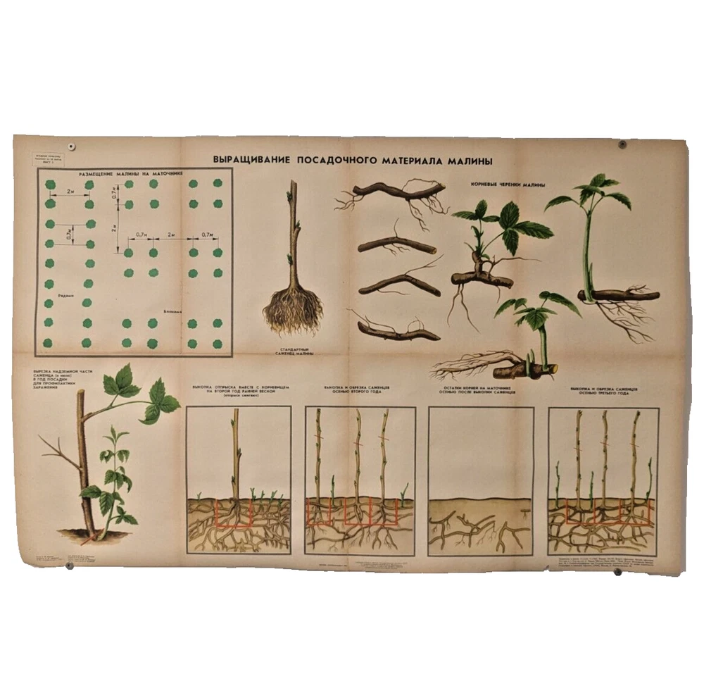 🌻 Plant Vintage Poster 1985 🌿 Soviet Boho Style 🌳 raspberry growing process