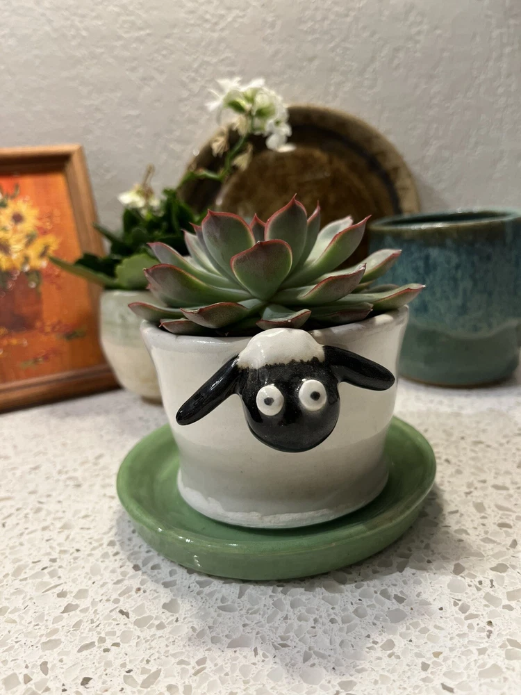 Hand made ceramic planter. Cute sheep