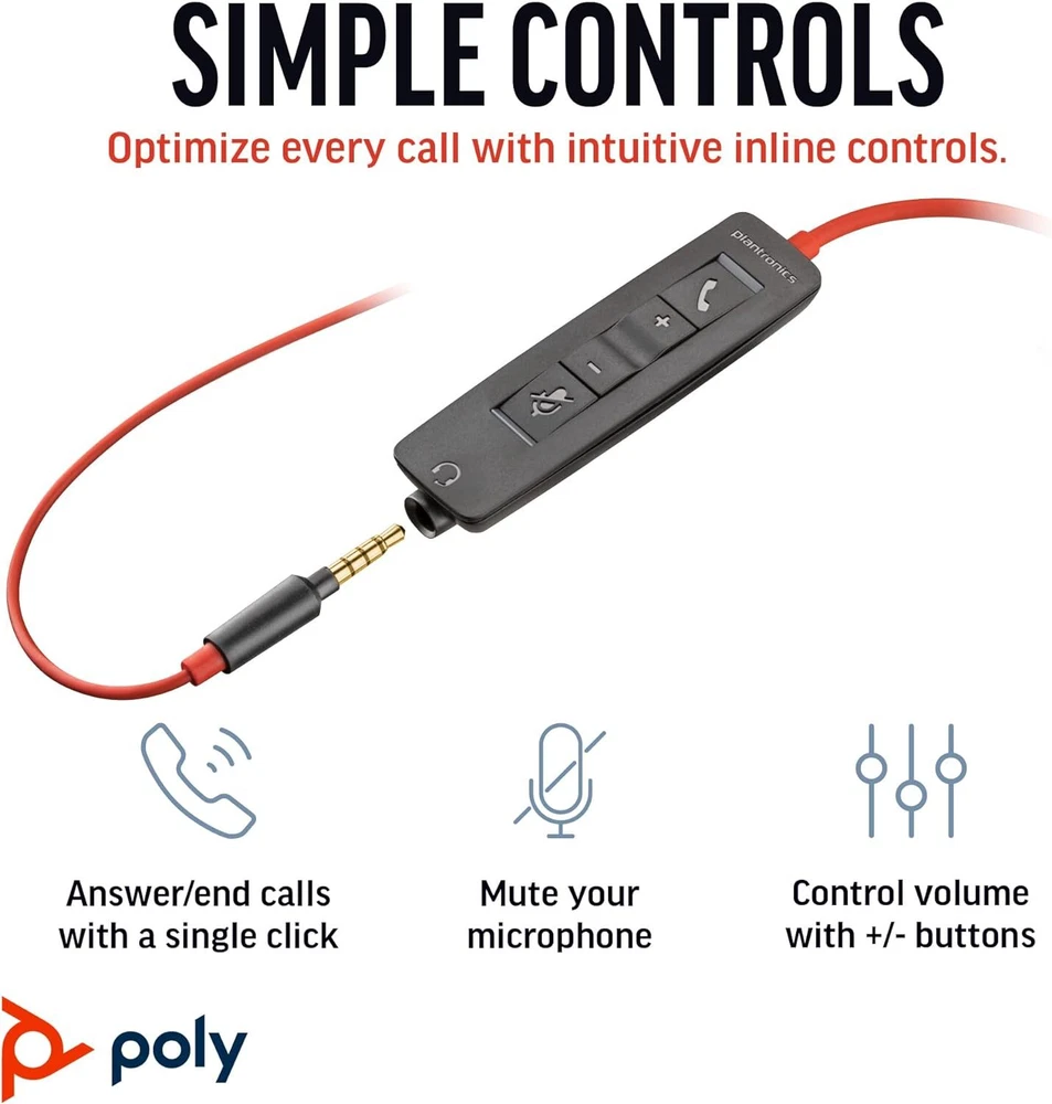 Plantronics Blackwire 3225 USB-C Headset w/ controller for laptops and desktops Product Information: Enhance your audio experience with the Plantronics Blackwire 3225 USB-C Headset. This on-ear mono headset is perfect for laptops and desktops, offering clear communication with its noise-cancellation feature and a boom microphone that can be easily adjusted. The headset comes in classic black and has a comfortable headband and ear-pads for extended use. With a microphone mute button and volume control, you can easily adjust the sound levels and have complete control over your conversations. The USB-C connectivity ensures a stable connection and compatibility with most devices. Get the most out of your audio experience with the Plantronics Blackwire 3225 USB-C Headset. Product Info: What You Get:Plantronics Blackwire 3225 USB-C Headset, On-Ear Mono Headset, Wired Brand: Plantronics Model: Plantronics Blackwire 3225 On Nov 20, 2024 at 02:55:41 PST, seller added the following information: