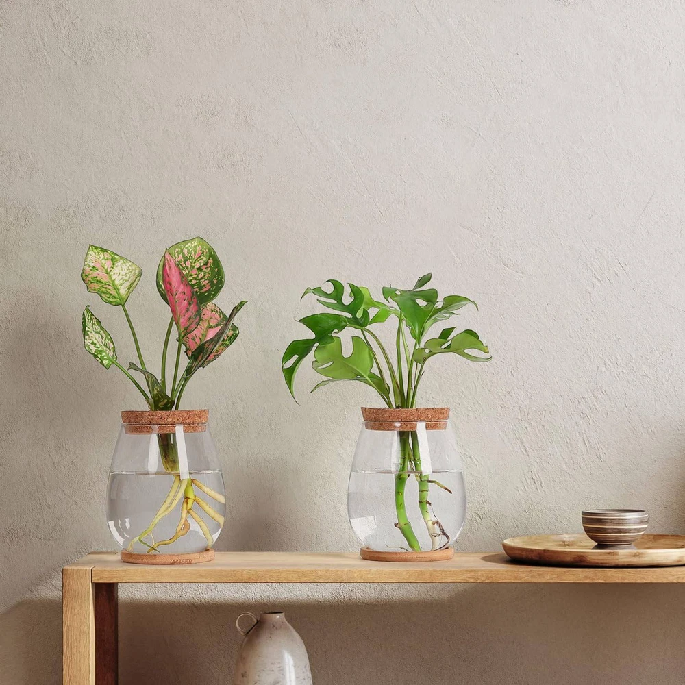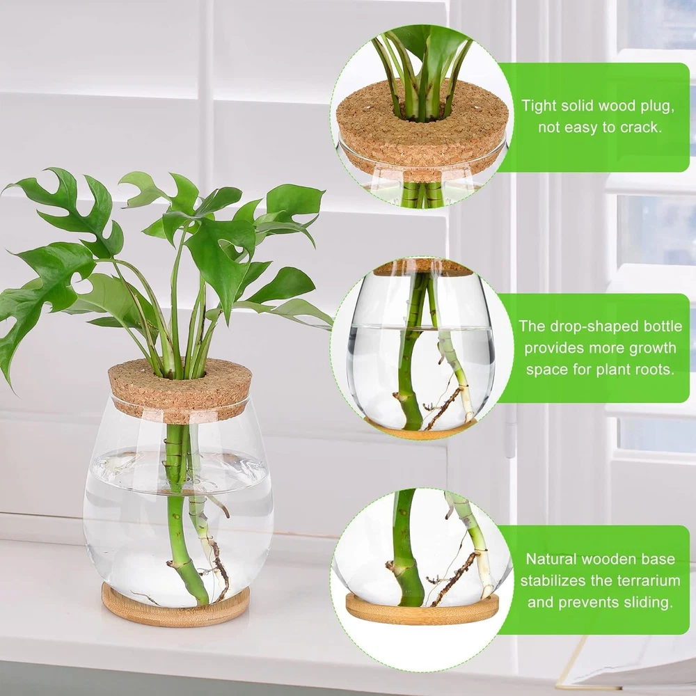Plants Propagation Stations, 2 Pcs Separated Desktop Plant Terrarium with6075 [] Our terrarium glass are equipped with hole plugs and tray bases to help fix plants and prevent them from falling. -like shape provides more space for plant and makes plants look more beautiful. [Quality Terrarium]Made of High boron silicon heat glass.(Not easy to be broken). [Retro Home Office Decor] Great arrangement, cutting plants, artificial, freshly flowers, mixed bouquets, water rooted plants or live houseplants, likes Scindapsus, Pothos vine, African violets, , even for Herbs, you can observe its growth condition and help your plants , perfect for your home windowsill, office desk, living room table, bedroom, nursery or kitchen [Best gifts for women plant lovers]Mother's Day, birthday, Christmas, Valentine's Day, Thanksgiving gift ideas. Nice present to your nature-loving, . Sweet wedding , anniversary, and special occasions decoration gifts. [Many Uses]As propagate plants terrariums, it is good to propagate plant cuttings and plants; as hydroponic plants planter, it is good to grow hydroponic plants; if as glass flower vase, you could also use it to keep one or two flowers. size: 14 x 11cm Material: Glass colour: Transparent + brown Package Contents: 2 x Glass Planter