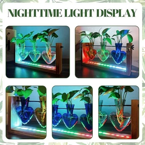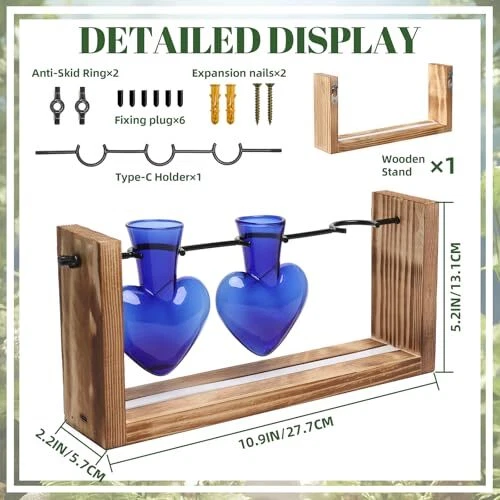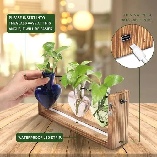 Return Policy Fast Delivery Trusted seller Plants Propagation Stations Wood Wall Planters for Indoor Plants with Light Up Birthday Gift for Women Heart Shaped Glass for Home Office Decor Product Description 【Colored Glass Bottle】This Plant Propagation bottle is made of high borosilicate glass and handcrafted through high-temperature firing. Its colors are clear and bright, providing a comfortable visual experience.Add an LED light strip to make the colored glass vase even more dazzling. 【Easy to assemble】: Run the rod into the wooden frame and screw on the fastener and tighten. Hang the glass bottle into the C-Type Holder. The little rubber caps can help hold the glass bottles on so they dont falling down. You can even mount it on the wall (wall mount and screws included). 【gifts for women】Mother's Day, Women's Day,Valentine's Day,birthday, Christmas, Thanksgiving gift ideas. Nice present to your nature-loving, gardeners. Sweet wedding party, anniversary, and special occasions decoration gifts. 【Home Office Decor】Simple and elegant style plant propagation suit any style room. Add a touch of brightness to your house by placing it on the windowsill, living room, kitchen, office, or hanging it on the wall. 【Two Precautions】Do not overtighten the screws. The C-shaped iron piece maintains its horizontal position by the weight of the glass vase. Glass is a fragile material, and we have taken extra protective measures. If you receive a broken glass vase, please contact us promptly. Shipping Returns Payment Shipping Shipping is FREE to all addresses other than APO/PO boxes in the lower 48 states. All our stock ships from US-based warehouses. Shipped via USPS or UPS (depending on location and package weight) Unless stated otherwise, all orders will ship within 24-72 hours of your payment being processed. Check our feedback to see the great reviews of FAST shipping we offer. Returns Seller does not accept returns Payment We currently accept payment via eBay managed payments only. Once payment is cleared, we will dispatch your shipment within 1-3 business days. Please refer to the "Shipping" tab for more information regarding shipping speed to your destination.