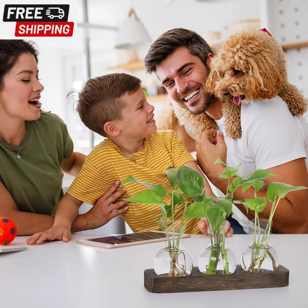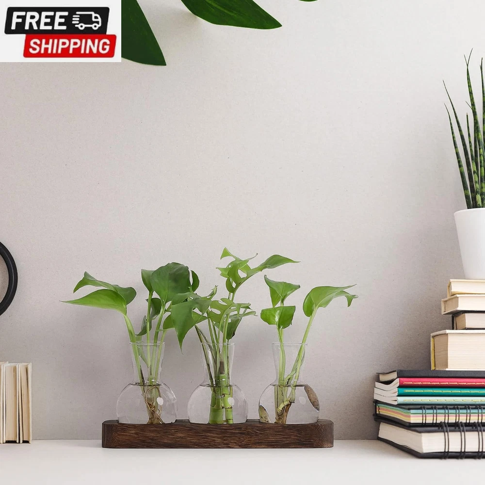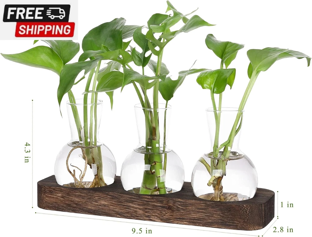 Plants Propagation Stations,Plant Terrarium with Wooden Stand Wall Hanging Glass Planter Plant Propagation Vase for Indoor Office Home Garden Decor Plant Lover Gifts for Women 【Plant Propagation Stations】This desktop propagation vases for plants is perfect for hydroponics, air plants, and flowers, and it also helps purify the air and create a relaxing atmosphere. Who likes plants and enjoy life will love it at a glance. 【Stylish Design】The groove design of the wooden tray is combined with a flat bottomed light bulb vase. Compared to other wall mounted bulb vases, it does not restrict plant growth and is easier to carry and exchange water. 【Retro Home Office Decor】Simple and elegant style plant propagation suit any style room. Add nice touch to your house, put it on window sill, coffee table, living room, ding room, kitchen, dormitory and bedroom. It will be more beautiful and eye-catching if you fill the bottle with colored water or some cobbles. 【Best gifts for women plant lovers】Mother's Day, birthday, Christmas, Valentine’s Day, Thanksgiving gift ideas. Nice present to your nature-loving, gardeners. Sweet wedding party, anniversary, and special occasions decoration gifts. 【Size】Wooden tray: 9.5'' L x 2.8'' W x 1'' H, Vase: 2.8"D x 3.9"H; Opening Diameter is 1.4". No need to install, can be used directly, the product should be placed in the no-sunlight to use.Note: Can not be placed in the sun! 【Service Guarantee】Customers First. We are responsible for any damage during transportation. If you have any questions, contact us through Amazon please. We will serve you wholeheartedly until you are satisfied. Product Description YIBOT Bring green into your life It really is cute,The glass is very clear and sit perfectly into the grooves in the wood base, which adds to the appeal, and the dark wood base has a rustic classiness to it. Gifts for Women This is an perfect desktop glass bulb vase for plant's propagations and cuttings, use to propagate baby plants. It is suitable for display fresh flower, hydroponics plants. Make a great gift for the plant-lover in your life. YIBOT Plants Propagation Stations Plant Terrarium With Wooden Stand Package Contents: 3x Glass Vase 1 x Wooden Tray 3 bottle wooden tray size: 9.5'' L x 2.8'' W x 1'' H Vase: 2.8"D x 4"H Material: Wood, Glass Note: No plants or other decorative objects included in this item! Note: Can not be placed in the sun! Best Gift for Plant lover Desktop Propagation station with retro style great for floral arrangement, home or office decoration as well as various gift ideas. Plant Gifts for Plant Lovers Women Best gifts for women plant lovers,suitable for various festivals such as: Mother's Day, birthday, Christmas, Valentine’s Day, Thanksgiving gift ideas. Shipping Fast shipping is very important for us. Our standard US shipping service is FREE. Your order will be shipped within 2-3 business days upon full payment received. Your order will be delivered within 2-3 business days after the handling time. We only ship to the confirmed PayPal address. We reserve the right to cancel any order for any reason at any time. We are not responsible for undeliverable addresses. Returns and payment We offer a 30 days return policy from checkout winning date. We allow only PayPal as payment method FeedBack Your feedback very important to us, after you get your package and you are satisfied with our service please leave us positive feedback If you have any problem with your order / any questions please before leave any type of feedback For any questions, using eBay contact system Please visit our eBay store to check out other items for sale! Thank you for shopping at our store.