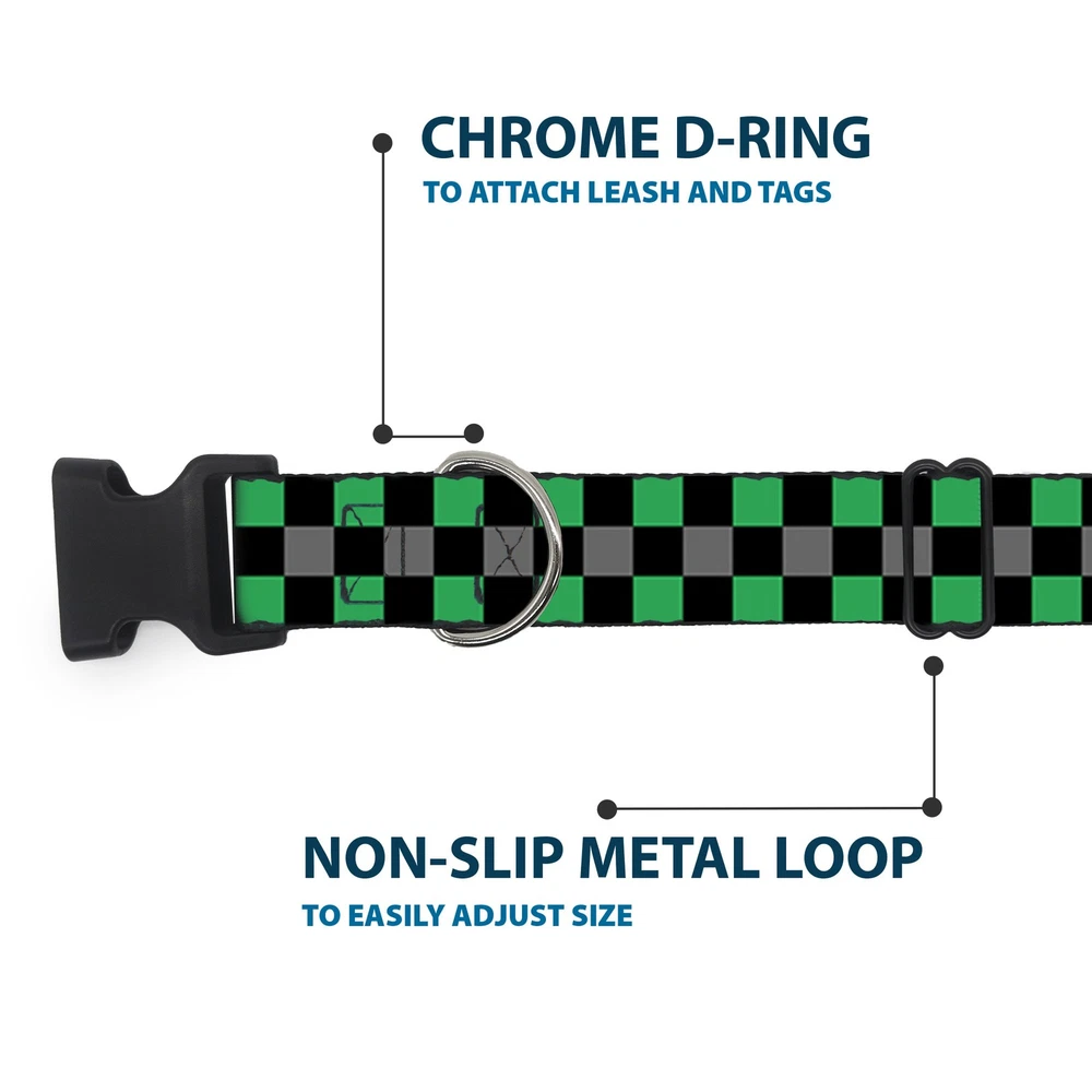 Further Details Title: Plastic Clip Collar Checker Black/Gray/2 Green Small 9.5-13" Condition: New Release Date: 03/16/2017 Description: Vibrant and bold, this beautiful, polyester dog collar is made to show off your dog's unique style through all the seasons. With an overengineered plastic buckle and strong D-ring, this durable collar can hold up to whatever your dog can dish out. This product is officially licensed by Buckle-Down. Item Height: 25mm Item Width: 25mm Item Weight: 65g Age Level: All Life Stages Brand: Buckle-Down Designs Color: Green Item Length: 381mm Material: Nylon Number of Items: 3003 Type: Dog Collar Plastic Clip Buckle Dimensions: 15 x 1 x 1 inches; 2.3 ounces Pattern: Checker,Dog Size: 1" Wide - Fits 9.5-13" Neck - Small Closure: Buckle MPN: W30383-1.0-S Dog Breed: All Breed Sizes Fits 9.5-13" neck size and is 1" wide. Vibrant and bold, this beautiful polyester dog collar is made to show off your dog's unique style through all the seasons. With an overengineered plastic buckle and strong D-ring, this durable collar can hold up to whatever your dog can dish out. This product is assembled in the USA by Buckle-Down and is officially licensed by Checkered. Matching leads/leashes available Missing Information? Please contact us if any details are missing and where possible we will add the information to our listing.