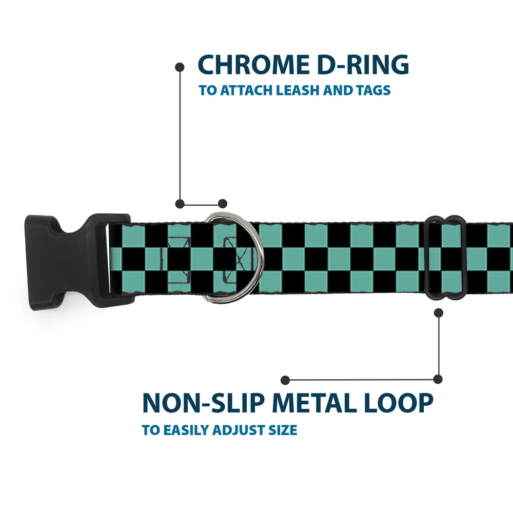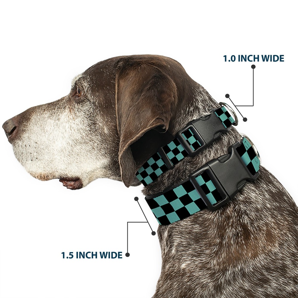 Further Details Title: Plastic Clip Collar Checker Black/Teal Small 9.5-13" Condition: New Release Date: 03/16/2017 Description: Vibrant and bold, this beautiful, polyester dog collar is made to show off your dog's unique style through all the seasons. With an overengineered plastic buckle and strong D-ring, this durable collar can hold up to whatever your dog can dish out. This product is officially licensed by Buckle-Down. Item Height: 25mm Item Width: 25mm Item Weight: 49g Age Level: All Life Stages Brand: Buckle-Down Designs Color: Turquoise Item Length: 381mm Material: Nylon Number of Items: 15045 Type: Dog Collar Plastic Clip Buckle Dimensions: 15 x 1 x 1 inches; 1.76 ounces Pattern: Checker Size: 1" Wide - Fits 9.5-13" Neck - Small Closure: Buckle MPN: W32914-1.0-S Dog Breed: All Breed Sizes Fits 9.5-13" neck size and is 1" wide. Vibrant and bold, this beautiful polyester dog collar is made to show off your dog's unique style through all the seasons. With an overengineered plastic buckle and strong D-ring, this durable collar can hold up to whatever your dog can dish out. This product is assembled in the USA by Buckle-Down and is officially licensed by Buckle-Down. Matching leads/leashes available Missing Information? Please contact us if any details are missing and where possible we will add the information to our listing.