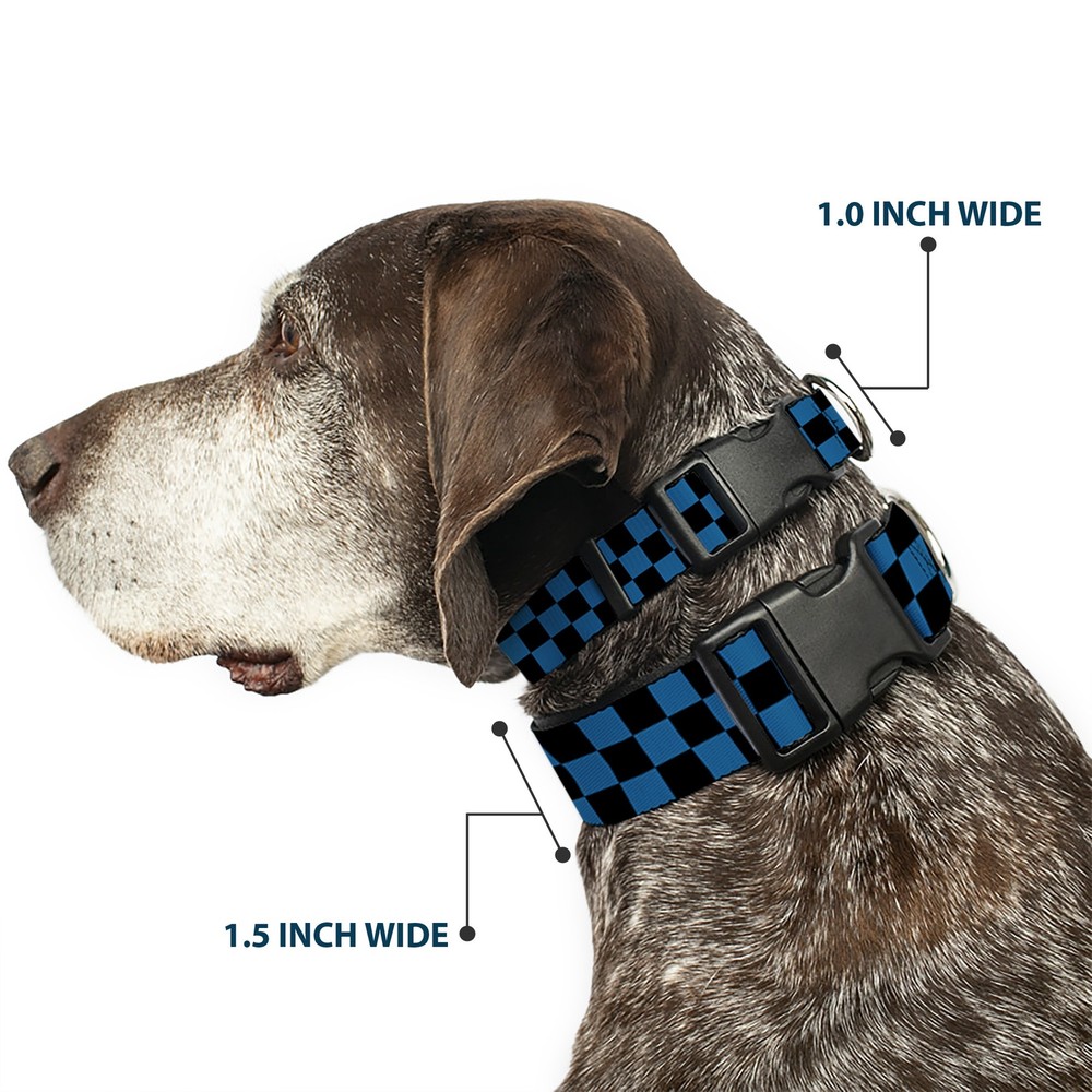 Further Details Title: Plastic Clip Collar Checker Black/Turquoise Small 9.5-13" Condition: New Release Date: 03/16/2017 Description: Vibrant and bold, this beautiful, polyester dog collar is made to show off your dog's unique style through all the seasons. With an overengineered plastic buckle and strong D-ring, this durable collar can hold up to whatever your dog can dish out. This product is officially licensed by Buckle-Down. Item Height: 25mm Item Width: 25mm Item Weight: 49g Age Level: All Life Stages Brand: Buckle-Down Designs Color: Blue Item Length: 381mm Material: Nylon Number of Items: 2508 Type: Dog Collar Plastic Clip Buckle Dimensions: 15 x 1 x 1 inches; 1.76 ounces Pattern: Checker,Dog Size: 1" Wide - Fits 9.5-13" Neck - Small Closure: Buckle MPN: W30316-1.0-S Dog Breed: All Breed Sizes Fits 9.5-13" neck size and is 1" wide. Vibrant and bold, this beautiful polyester dog collar is made to show off your dog's unique style through all the seasons. With an overengineered plastic buckle and strong D-ring, this durable collar can hold up to whatever your dog can dish out. This product is assembled in the USA by Buckle-Down and is officially licensed by Checkered. Matching leads/leashes available Missing Information? Please contact us if any details are missing and where possible we will add the information to our listing.