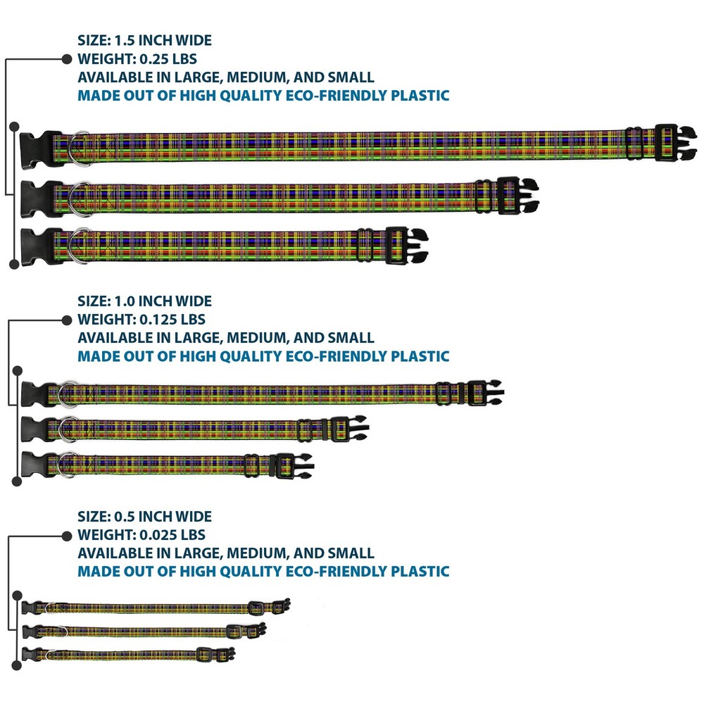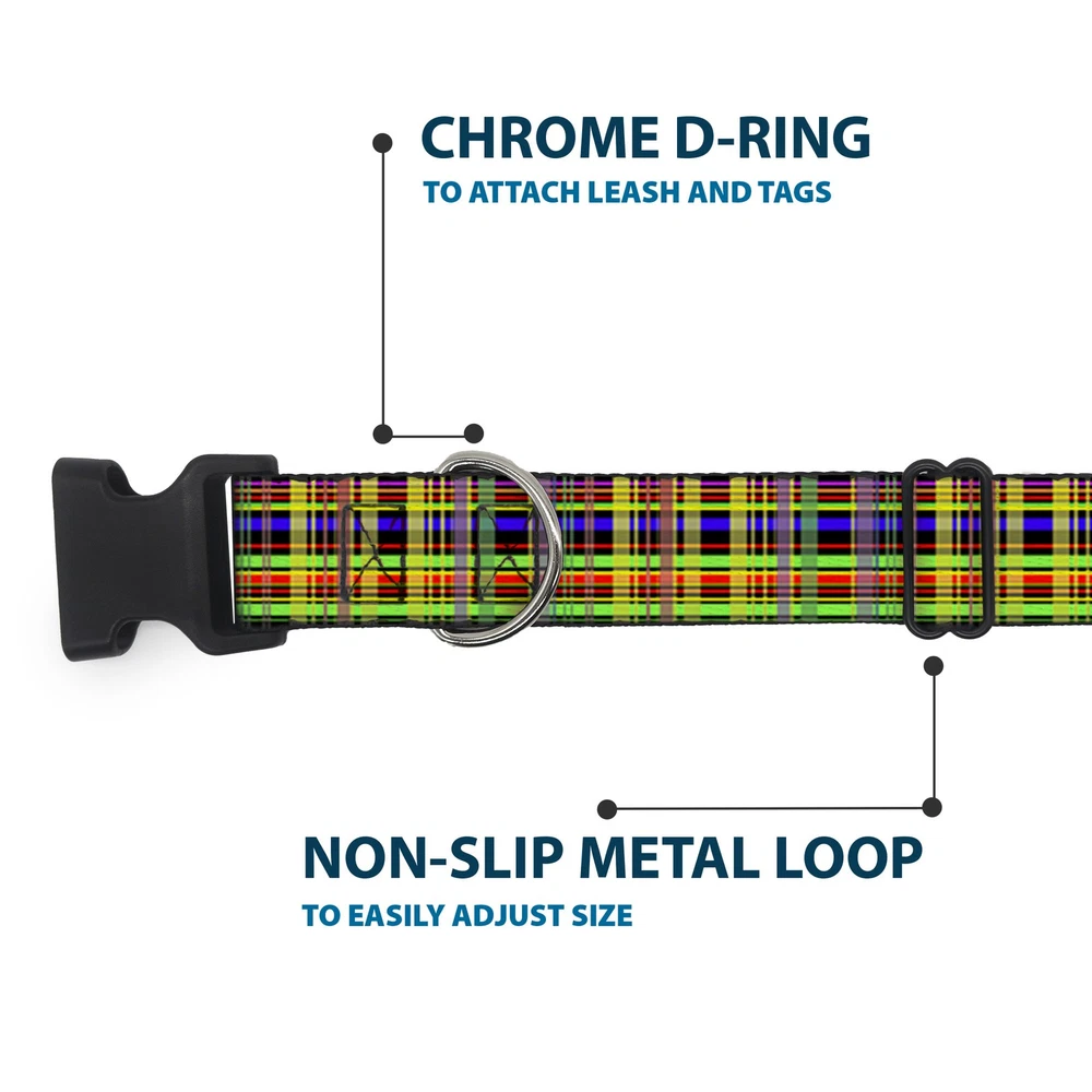 Further Details Title: Plastic Clip Collar Plaid Black/Multi Neon NARROW-Medium 8.5-12" Condition: New Release Date: 03/16/2017 Description: Vibrant and bold, this beautiful, polyester dog collar is made to show off your dog's unique style through all the seasons. With an overengineered plastic buckle and strong D-ring, this durable collar can hold up to whatever your dog can dish out. This product is officially licensed by Buckle-Down. Item Height: 25mm Item Width: 12mm Item Weight: 17g Age Level: All Life Stages Brand: Buckle-Down Designs Color: Multicolor Item Length: 304mm Material: Nylon Number of Items: 9549 Type: Dog Collar Plastic Clip Buckle Dimensions: 12 x 0.5 x 1 inches; 0.6 ounces Pattern: Dog,Plaid Size: 1/2" Wide - Fits 8.5-12" Neck - Medium Closure: Buckle MPN: W31603-0.5-M Dog Breed: All Breed Sizes Fits 8.5-12" neck size and is 1/2 inch wide. Vibrant and bold, this beautiful polyester dog collar is made to show off your dog's unique style through all the seasons. With an overengineered plastic buckle and strong D-ring, this durable collar can hold up to whatever your dog can dish out. This product is assembled in the USA by Buckle-Down and is officially licensed by Plaid. Matching leads/leashes available Missing Information? Please contact us if any details are missing and where possible we will add the information to our listing.