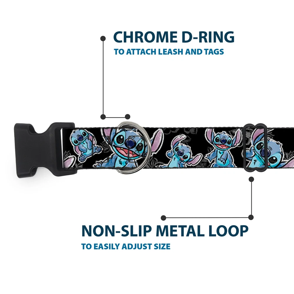 Further Details Title: Plastic Clip Collar Stitch Poses/Hibiscus Sketch Black/Gray/Blue Large 15-24" Condition: New Release Date: 03/16/2017 Item Weight: 60g Item Height: 25mm Age Level: All Life Stages Brand: Lilo & Stitch MPN: WDY063-1.0-L Item Length: 660mm Size: 1" Wide - Fits 15-24" Neck - Large Number of Items: 38432 Type: Dog Collar Plastic Clip Buckle Material: Polyester Pattern: Dog Dimensions: 26 x 1 x 1 inches; 2.15 ounces Item Width: 25mm Color: Blue Description: Vibrant and bold, this beautiful, polyester dog collar is made to show off your dog's unique style through all the seasons. With an overengineered plastic buckle and strong D-ring, this durable collar can hold up to whatever your dog can dish out. This product is officially licensed by Disney. Closure: Buckle Dog Breed: All Breed Sizes Fits 15-24" neck size and is 1" wide. Vibrant and bold, this beautiful polyester dog collar is made to show off your dog's unique style through all the seasons. With an overengineered plastic buckle and strong D-ring, this durable collar can hold up to whatever your dog can dish out. This product is assembled in the USA by Buckle-Down and is officially licensed by Disney. Matching leads/leashes available Missing Information? Please contact us if any details are missing and where possible we will add the information to our listing.