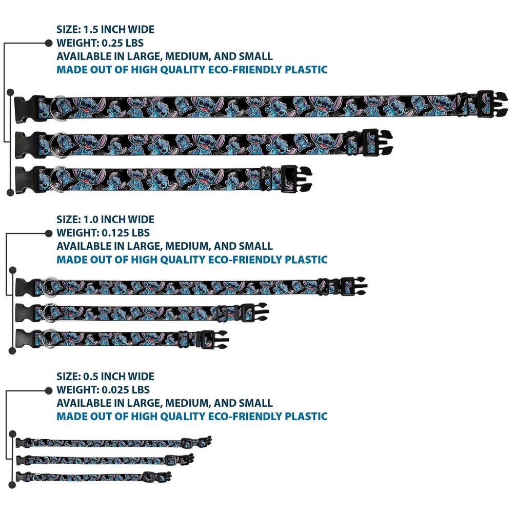 Item Weight: 51g Type: Dog Collar Plastic Clip Buckle Release Date: 03/16/2017 Item Length: 431mm Dimensions: 17 x 1 x 1 inches; 1.83 ounces MPN: WDY063-1.0-M Age Level: ‎All Life Stages UPC: 0700146021999 Color: Blue Item Width: 25mm Material: Plastic, Polyester Item Height: 25mm Size: 1" Wide - Fits 11-16.5" Neck - Medium Number of Items: ‎38433 Pattern: Dog gtin13: 0700146021999 Dog Breed: ‎All Breed Sizes Closure: Buckle Brand: Lilo & Stitch Title: Plastic Clip Collar Stitch Poses/Hibiscus Sketch Black/Gray/Blue
