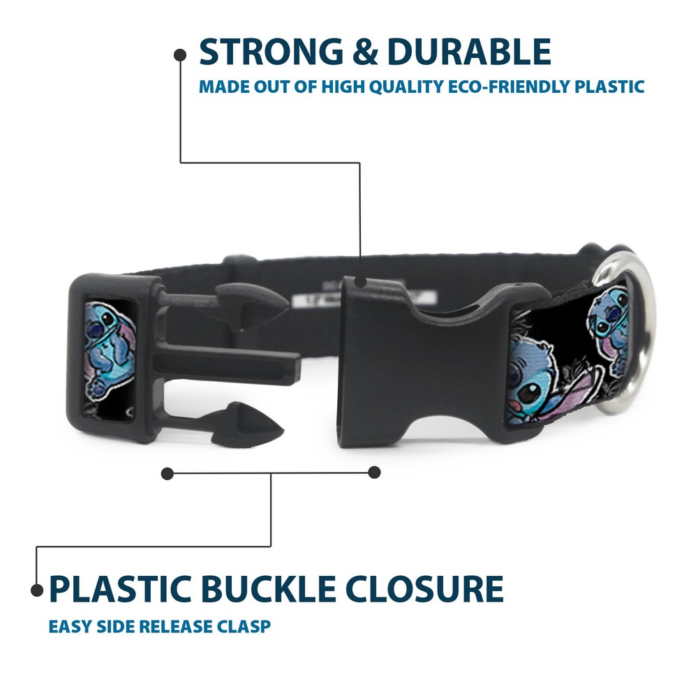 Further Details Title: Plastic Clip Collar Stitch Poses/Hibiscus Sketch Black/Gray/Blue Medium 11-16.5" Condition: New Description: Vibrant and bold, this beautiful, polyester dog collar is made to show off your dog's unique style through all the seasons. With an overengineered plastic buckle and strong D-ring, this durable collar can hold up to whatever your dog can dish out. This product is officially licensed by Disney. Age Level: ‎All Life Stages Color: Blue Brand: Lilo & Stitch Closure: Buckle MPN: WDY063-1.0-M Item Weight: 51g Material: Plastic, Polyester Dimensions: 17 x 1 x 1 inches; 1.83 ounces Dog Breed: ‎All Breed Sizes Item Length: 431mm Item Width: 25mm Item Height: 25mm Size: 1" Wide - Fits 11-16.5" Neck - Medium Number of Items: ‎38433 Type: Dog Collar Plastic Clip Buckle Pattern: Dog Release Date: 03/16/2017 Fits 11-16.5" neck size and is 1" wide. Vibrant and bold, this beautiful polyester dog collar is made to show off your dog's unique style through all the seasons. With an overengineered plastic buckle and strong D-ring, this durable collar can hold up to whatever your dog can dish out. This product is assembled in the USA by Buckle-Down and is officially licensed by Disney. Matching leads/leashes available Missing Information? Please contact us if any details are missing and where possible we will add the information to our listing.