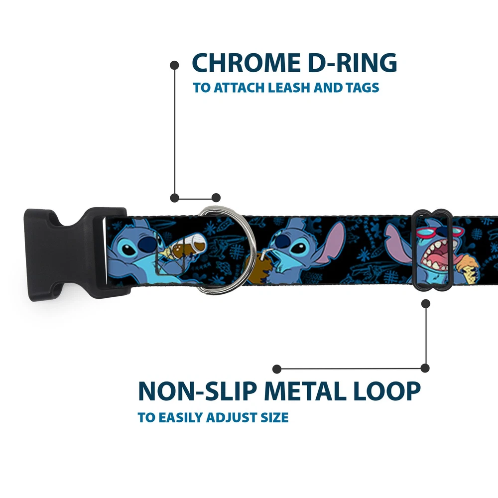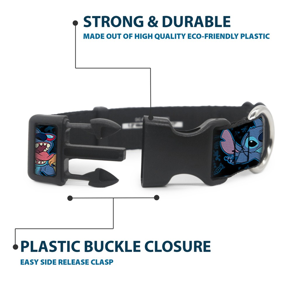 Further Details Title: Plastic Clip Collar Stitch Snacking Poses Black/Blue Medium 11-16.5" Condition: New Release Date: 03/16/2017 Item Weight: 53g Item Height: 25mm Age Level: ‎All Life Stages Brand: Lilo & Stitch MPN: WDY129-1.0-M Item Length: 431mm Size: 1" Wide - Fits 11-16.5" Neck - Medium Number of Items: ‎39027 Type: Dog Collar Plastic Clip Buckle Material: Polyester Pattern: Dog Dimensions: 17 x 1 x 1 inches; 1.9 ounces Item Width: 25mm Color: Blue Description: Vibrant and bold, this beautiful, polyester dog collar is made to show off your dog's unique style through all the seasons. With an overengineered plastic buckle and strong D-ring, this durable collar can hold up to whatever your dog can dish out. This product is officially licensed by Disney. Closure: Buckle Dog Breed: ‎All Breed Sizes Fits 11-16.5" neck size and is 1" wide. Vibrant and bold, this beautiful polyester dog collar is made to show off your dog's unique style through all the seasons. With an overengineered plastic buckle and strong D-ring, this durable collar can hold up to whatever your dog can dish out. This product is assembled in the USA by Buckle-Down and is officially licensed by Disney. Matching leads/leashes available Missing Information? Please contact us if any details are missing and where possible we will add the information to our listing.