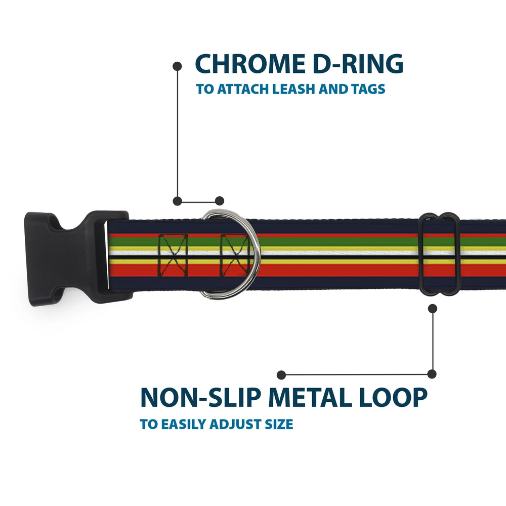 Plastic Clip Collar Stripes Navy/Red/Yellow/Black/White/Green Small 9.5-13"