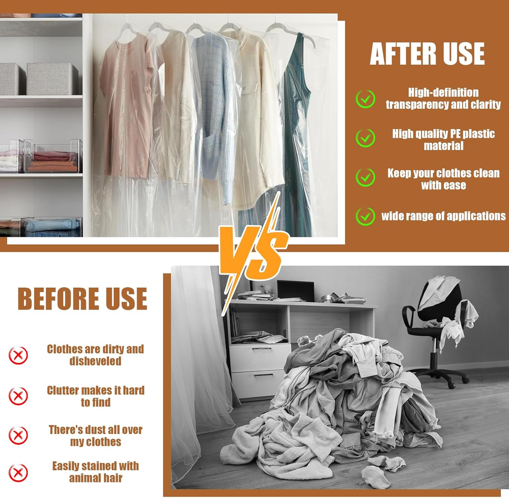 Store New Arrivals Add to Favorite View Feedback Contact Plastic Garment Bags Dry Cleaning Laundry Bags for Long Dresses Description Item model number GB-01 Closure Type Zipper Batteries Required? No Part Number 880420 Color white Material PE plastic Country of Origin China Item Weight 7 ounces Batteries Included? No Package Dimensions 9.25 x 8.66 x 0.63 inches Number of Pieces 20 20 Pack Garment Bags: You will receive 20 pieces of clear garment bags for hanging clothes. Enough quantity to meet your daily needs of clothes storage. Full Protection to Your Clothes: Adopting PE plastic material, the clear dry cleaning bag can protect your favorite clothes from dirt, dust, pets hair and unwanted odors effectively while hanging in your closet or during traveling. Large Clothes Protector Covers: Measuring 60 x 90 cm/ 23.6 x 35.4in, these clear plastic bags for clothes are suitable for most clothes with different length, such as jackets, suits, dresses, shirts, and pants. Transparent and Visiable: These dry cleaning bags for clothes adopt a transparent design, allowing you to see clearly what is inside and making it easy for you to find the clothes you want without opening the bag. Wide Application: Perfect for personal or commercial use, these clothes covers for hanging can be applied in dry cleaners, retail stores, tailor shops or at home. Product Description Good Helper for Closet Whether your clothes are always too much pet hair to tidy up? Whether your clothes always be wrinkle, dusted, faded? If so and you truly want to solve these problems. Try our clothes bags. These clear garment covers are designed to protect yout clothes. Clear Garment Bags for Hanging Clothes Full Protection to Your Clothes Adopting PE plastic material, the clear dry cleaning bag can protect your favorite clothes from dirt, dust, pets hair and unwanted odors effectively while hanging in your closet or during traveling. Transparent and Visiable These dry cleaning bags for clothes adopt a transparent design, allowing you to see clearly what is inside and making it easy for you to find the clothes you want without opening the bag..Note: Please be careful when using, it is soft and do not tear violently Large Clothes Protector Covers Measuring 60 x 90 cm/ 23.6 x 35.4in, these clear plastic bags for clothes are suitable for most clothes with different length, such as jackets, suits, dresses, shirts, and pants. Wide Application Introducing our 20-pack of clear garment bags, designed to cater to your everyday clothing storage needs. Crafted from premium PE plastic, these clear clothes covers offer full protection against dirt, dust, pets hair, and unwanted odors, while hanging in your closet or during travel. With dimensions of 60 x 90 cm/ 23.6 x 35.4in, these garment covers fit a variety of clothing items including jackets, suits, dresses, shirts, and pants. The transparent design allows for easy identification and access to your clothes without the hassle of opening each bag. Perfect for both personal and commercial use, these plastic garment bags are ideal for dry cleaners, retail stores, tailor shops, and home use. Size Size: 60 x 90 cm/ 23.6 x 35.4in Color: Transparent Material: PE plastic Size: 60 x 90 cm/ 23.6 x 35.4in ABOUT US We offer the best prices around on high quality products. Our E-store includes media such as books, movies, music and games while offering electronics, toys, sporting apparel, clothing, tools, general home, garden items and more. SHIPPING We are always working hard to ensure your package arrives as soon as possible. Please understand that some factors like weather, high postal traffic, and the performance of shipping companies are outside of our control. We offer free shipping to the lower 48 states and ship within 2 business days of payment, usually sooner. We do not accept P.O. Boxes. Please provide a physical address. For shipping outside of the continental USA, we only use eBay's Global Shipping Program.The item is shipped to KY and then sent to the rest of the world. International customers are responsible for all duties and taxes. Continue to check out in order to calculate costs for shipping the item to your country. Messages regarding eBay's Global Shipping Program MUST be directed at eBay EXCLUSIVELY. RETURNS We offer a 30-Day Return Policy on items which you are not completely satisfied with. You have the option for a full-refund or an exchange of the item. No returns are available on items shipped outside of the USA. PAYMENT We accept PayPal. CONTACT US This page content is yet to come Please ad us to your favorite seller and visit again later Thank You CUSTOMER SATISFACTION We try our very best to make sure every customer is completely satisfied. If there's a problem, message us! We're happy to help. WE ACCEPT Copyright © 2021 AutoDS. | All Rights Reserved