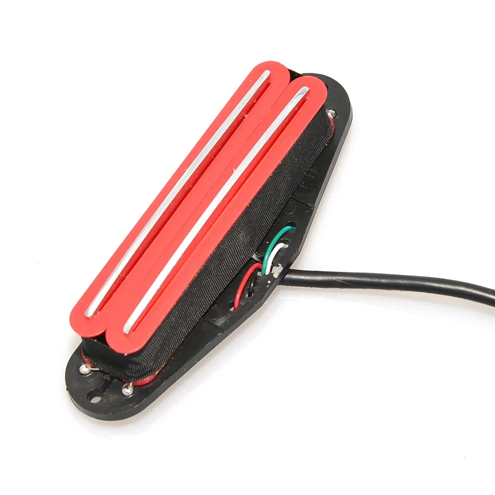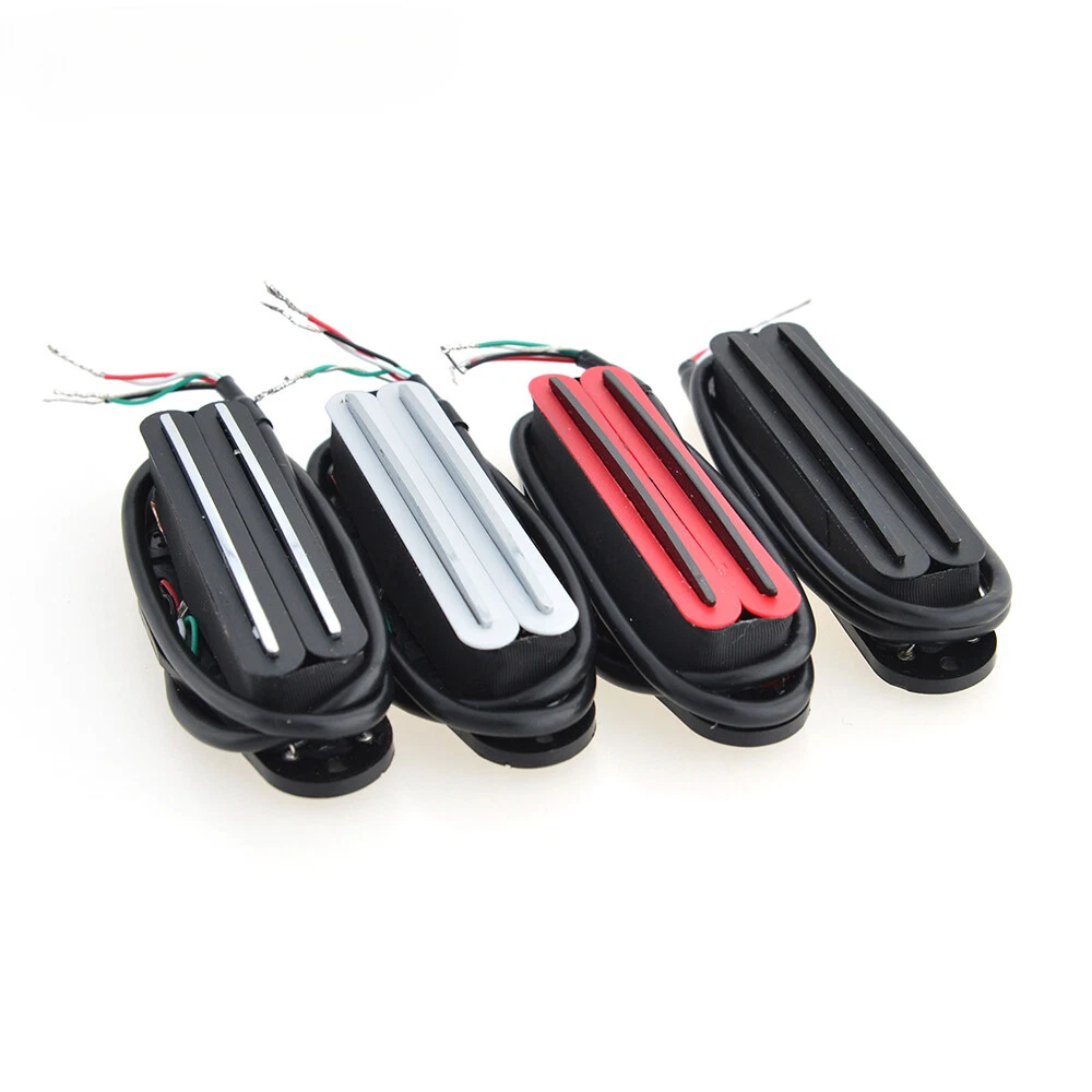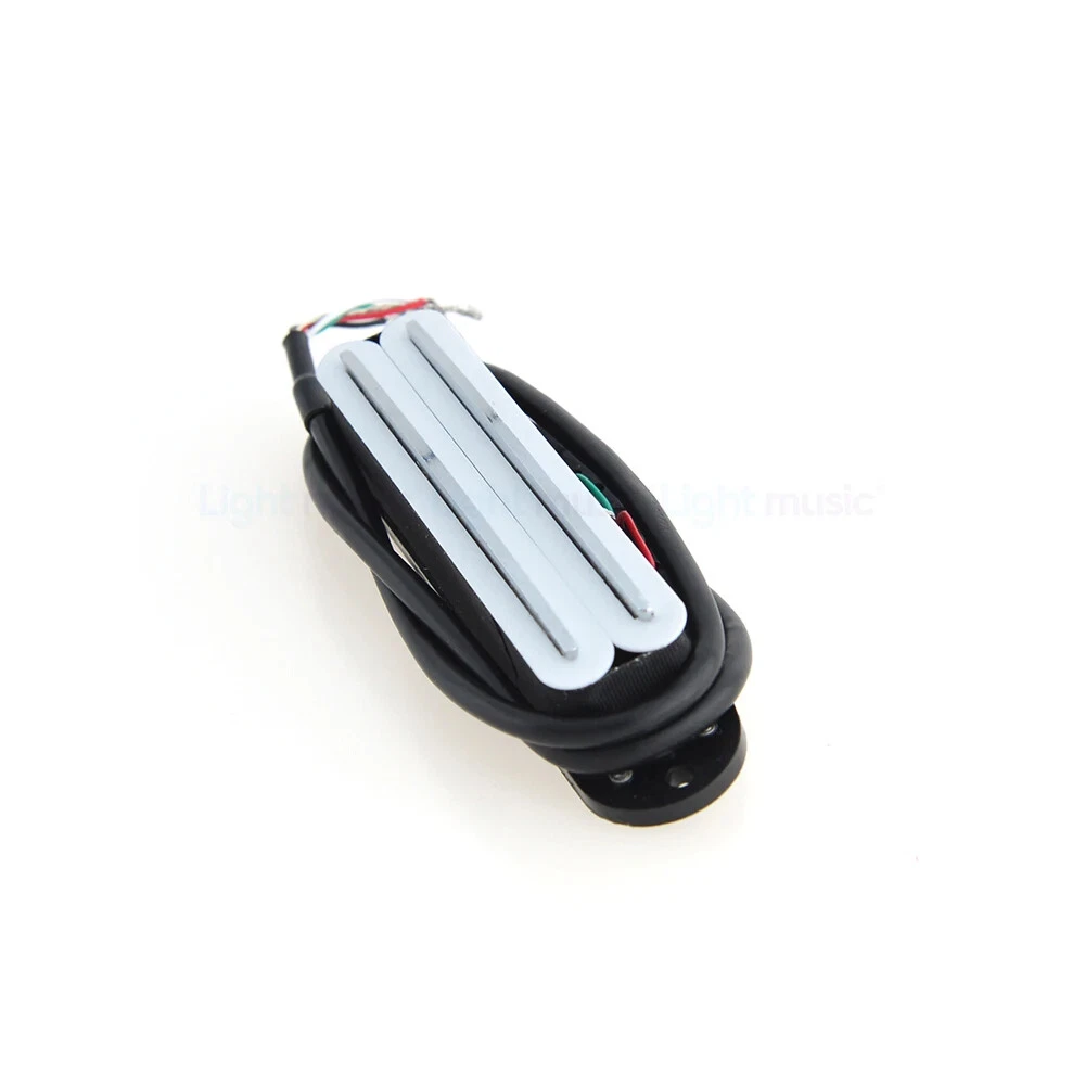 Bobbin:Plastic Cable:Four Counduct with Shield Line length:300mm All position Resistance:10k Note: The color of the item may vary slightly due to photography and your own computer Features: 1.With 4 wires for coil tapping 2.Fits for Electric Guitar White 3.The pickup has two pole pieces and is fully shielded for low noise and wired for hum cancelling 4.low noise dual coil single pick&twin blade pole piece,more sensitive response and clear tone Color:White,Yellow,Red,Black Material:Metal Size:approx.8.4cmx1.5cm/3.31"x0.59"(LxW) Measurement between the centre of the 2 screw holes is approx. 7.7cm Package including: 1 x Guitar pickup